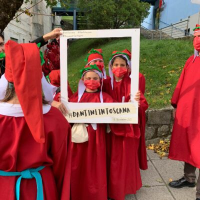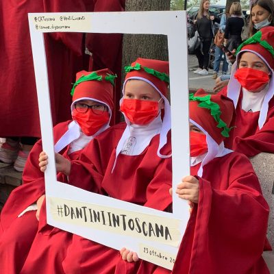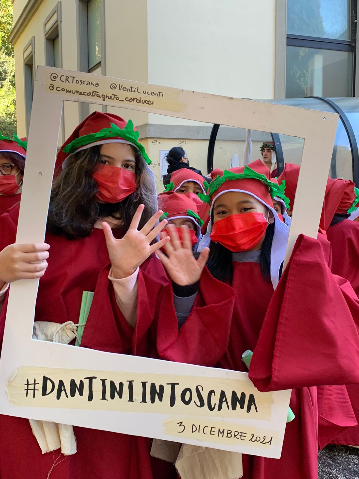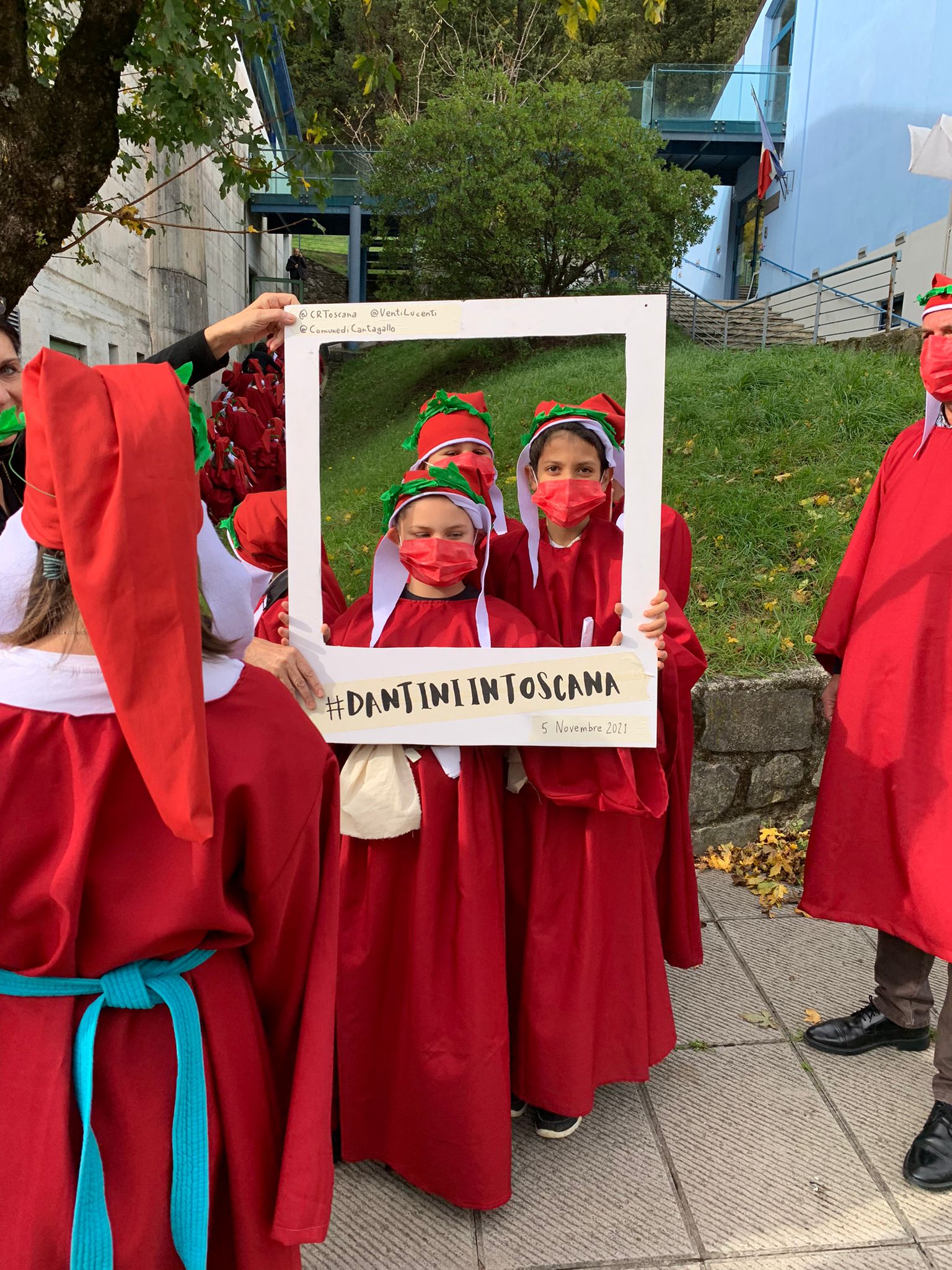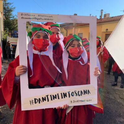 A conclusione di questo percorso formativo una performance collettiva, un happening cittadino dove a “vestire i panni” di Dante sono proprio i destinatari dello stesso: i bambini delle scuole elementari dei 5 comuni toscani che rappresentano altrettante province della Regione, che sfileranno per le vie cittadine insieme alle famiglie e alle insegnanti.