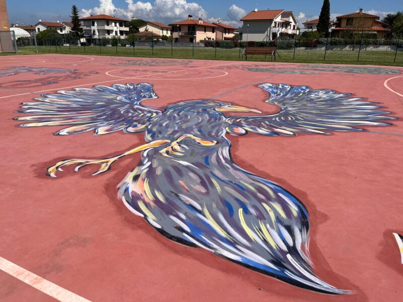 Ri-Generazione Toscana: street art su campo di basket a Perignano, Mazzeo all’inaugurazione