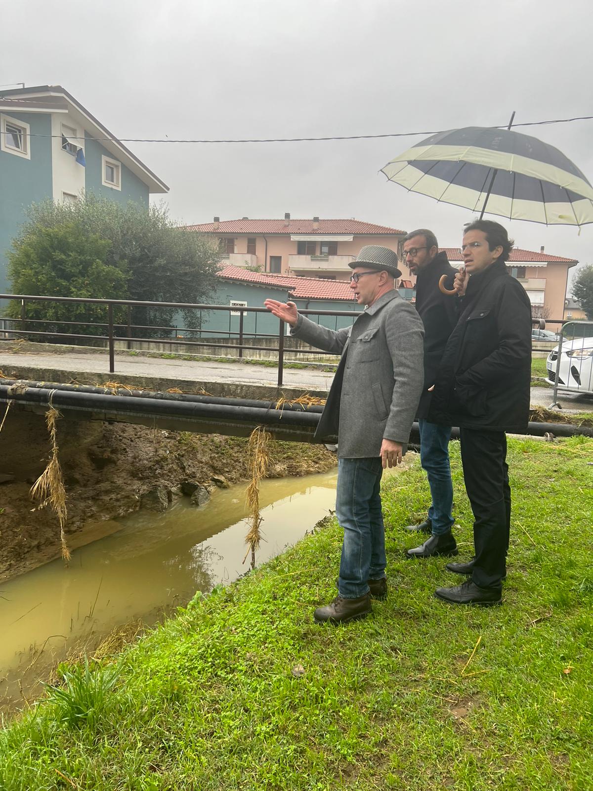 Il presidente dell’Assemblea legislativa e il consigliere regionale, accompagnati dal sindaco Alessio Spinelli, visitano i luoghi colpiti dalla forte ondata di maltempo del 2 e 3 novembre scorsi. Prioritario quantificare i danni e assicurare l’arrivo di risorse per ripristino e messa in sicurezza