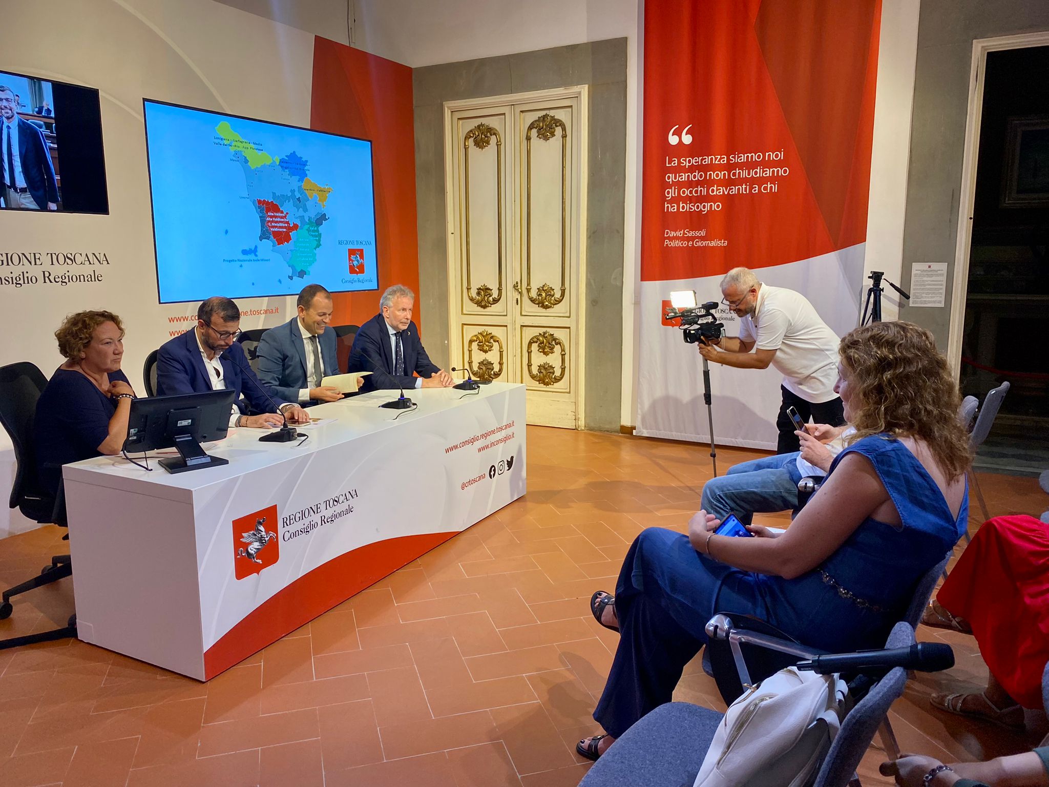 Alla conferenza stampa hanno preso parte anche i consiglieri Cristiano Benucci ed Elena Rosignoli (Pd), che fanno parte della commissione, e il portavoce dell’opposizione Marco Landi (Lega).