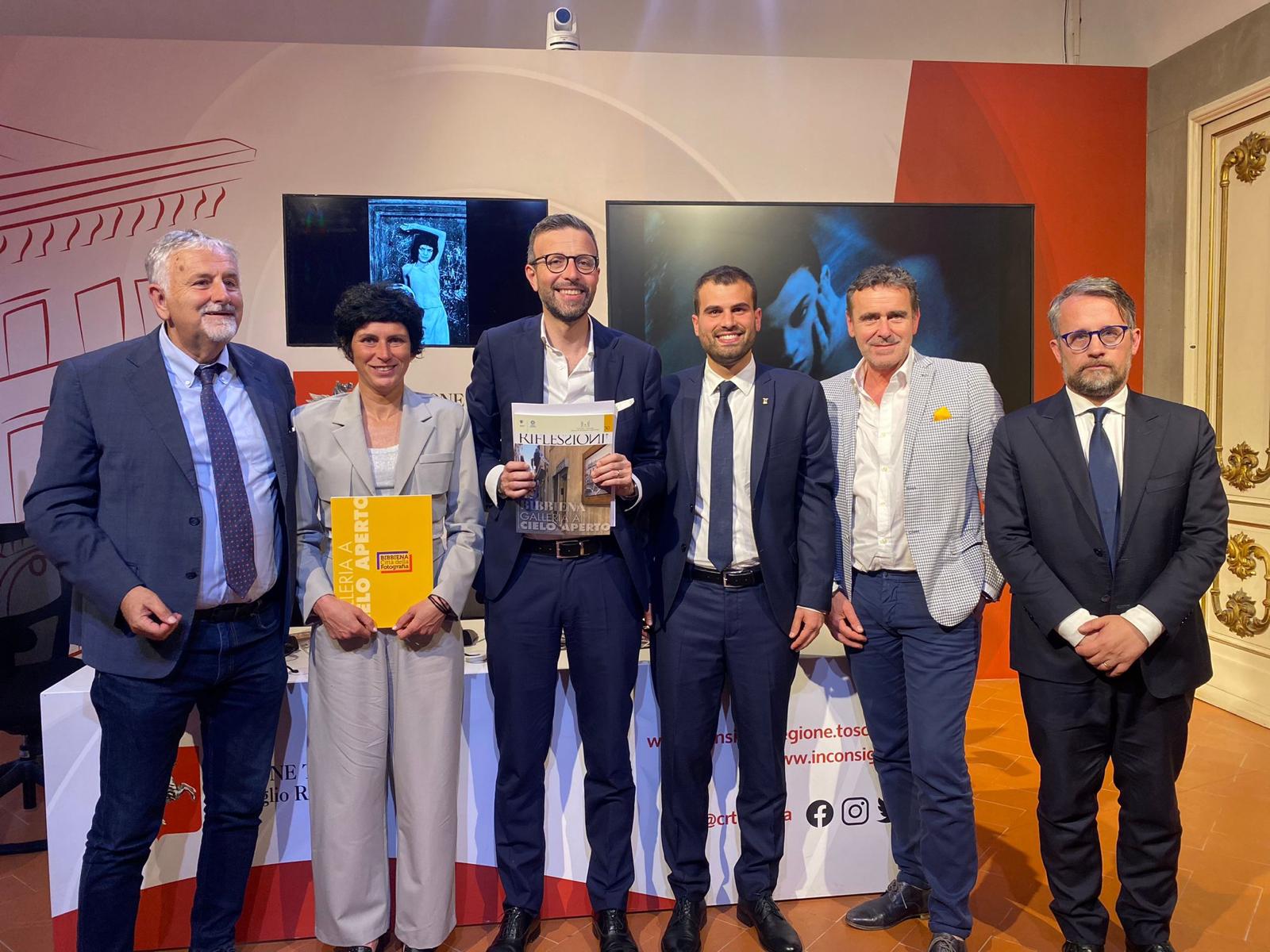 Presentato il programma della prossima edizione di Bibbiena fotografia che inizia sabato 17 giugno. Sono intervenuti Antonio Mazzeo e Marco Casucci, presidente e vicepresidente del Consiglio regionale, Vincenzo Ceccarelli consigliere regionale, Filippo Vagnoli e Francesca Nassini sindaco e assessore alla cultura del comune di Bibbiena, Roberto Rossi presidente FIAF (Federazione italiana associazioni fotografiche)