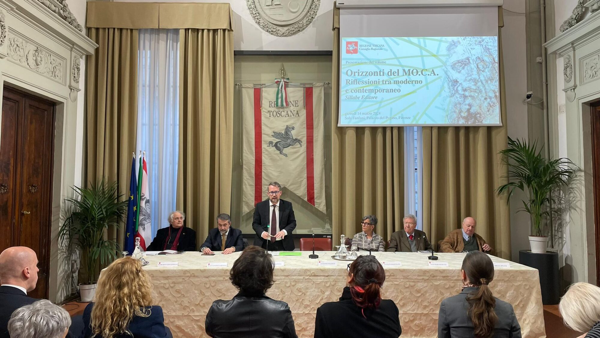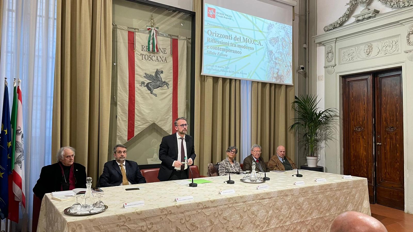 Firenze – In sala Fanfani a palazzo del Pegaso è stato presentato il volume “Orizzonti del Mo.C.A. Riflessioni tra moderno e contemporaneo” (Sillabe Editore). Sono intervenuti Marco Casucci vicepresidente del Consiglio regionale, Luciana Bartolini consigliera regionale, Alessandro Sartoni vicesindaco e assessore alla cultura di Montecatini Terme, Ugo Barlozzetti direttore della rivista “Modelli Militari”, Roberto Giovannelli direttore della collana “Orizzonti del Mo.C.A”, Carlo Lapucci scrittore.