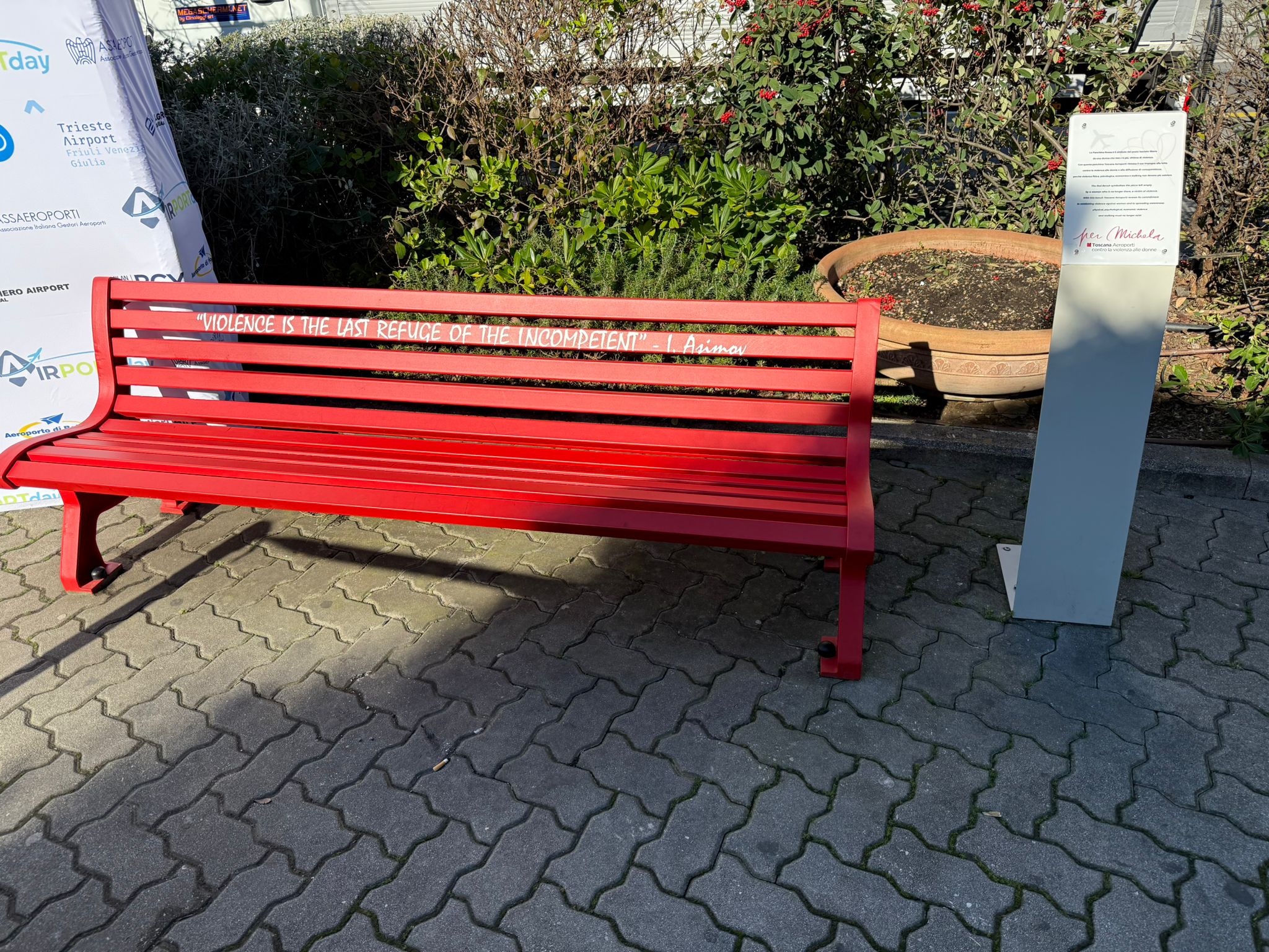 Violenza contro le donne: Mazzeo all’inaugurazione della panchina rossa all’aeroporto di Pisa