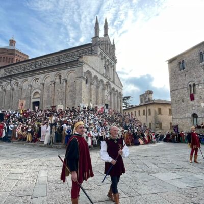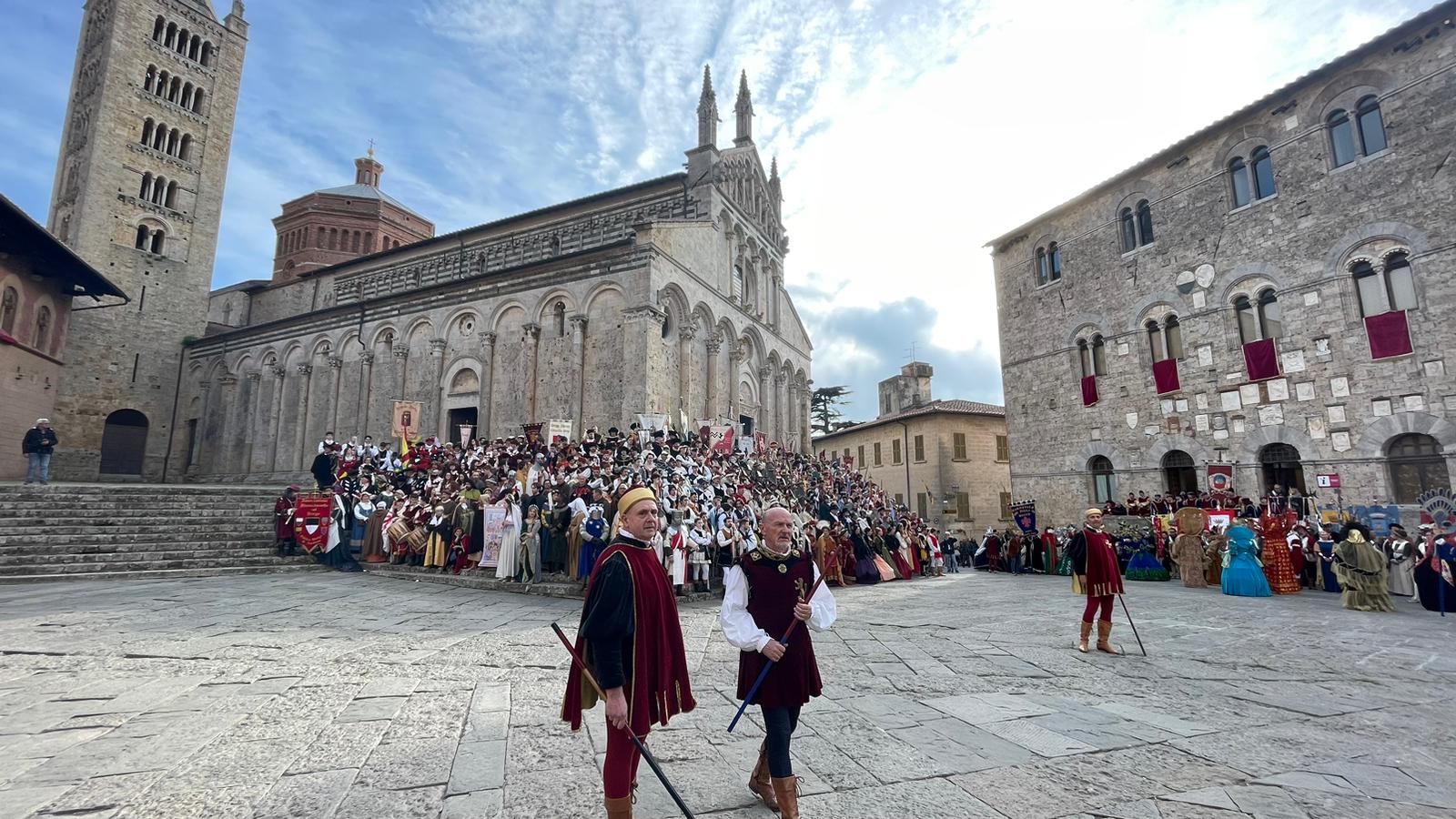 Al corteo, che ha attraversato le strade del centro cittadino di Massa Marittima per chiudersi davanti al bellissimo Duomo, hanno partecipato 65 gruppi storici, con oltre 1500 figuranti provenienti da tutta la Toscana. Con il presidente del Consiglio regionale, Antonio Mazzeo, insieme alle autorità civili e religiose, presenti anche il sindaco Massimo Giuntini, il presidente della Giunta regionale, Eugenio Giani, e il consigliere regionale Gabriele Veneri.
