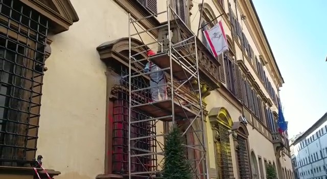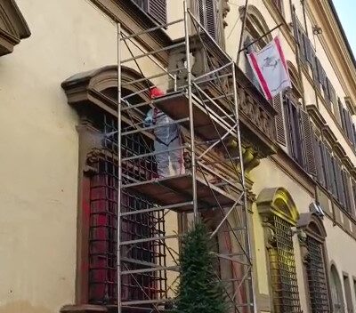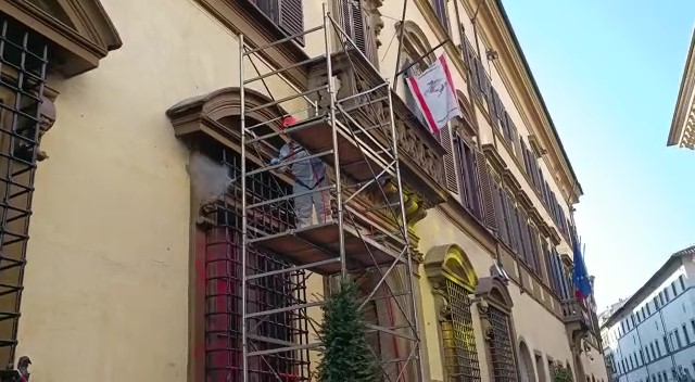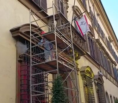 Firenze – Un intervento straordinario, attivato in somma urgenza immediatamente dopo il blitz con cui nella giornata di ieri, domenica 12 febbraio, è stata imbrattata la facciata del Consiglio regionale della Toscana, sta riportando velocemente la situazione alla normalità. A renderlo noto il presidente dell’Assemblea legislativa Antonio Mazzeo che questa mattina ha voluto fare, personalmente, un sopralluogo ai lavori di ripulitura non appena arrivato a Firenze: “Gli uffici si sono mossi fin da subito interessando la società di manutenzione del palazzo e coinvolgendo Comune e vigili per gli aspetti di transennamento e sicurezza. L’intervento di pulizia straordinaria sta procedendo e già in giornata la casa dei toscani sarà ripulita e resa di nuovo agibile”.