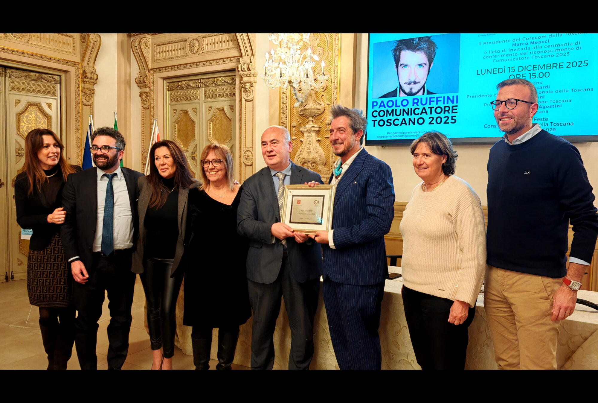 Firenze – Il Corecom della Toscana ha attribuito a Paolo Ruffini il riconoscimento di ‘Comunicatore Toscano 2025’ “per la sua capacità unica di coniugare talento artistico, sensibilità sociale e profondità umana in un linguaggio comunicativo autentico, inclusivo e immediatamente riconoscibile. Attore, autore e conduttore, Ruffini ha saputo trasformare ogni palcoscenico – teatrale, cinematografico e televisivo – in un luogo di dialogo e ascolto, promuovendo valori di solidarietà, rispetto e apertura verso l’altro. La sua attenzione costante al mondo della disabilità, espressa in progetti culturali e percorsi di spettacolo che mettono al centro la persona, rappresenta un esempio virtuoso di comunicazione capace di abbattere barriere e pregiudizi. Con ironia, leggerezza e profondità, Paolo Ruffini riesce a parlare a pubblici diversi, valorizzando la Toscana e portando la propria identità territoriale come segno di creatività, autenticità e vicinanza alla comunità. Per l’impegno nella divulgazione culturale, per la capacità di emozionare e unire attraverso le parole e le storie, e per il contributo originale al panorama comunicativo regionale e nazionale, il Corecom Toscana gli conferisce il riconoscimento di “Comunicatore Toscano 2025”. Così recita la motivazione ufficiale del Corecom.