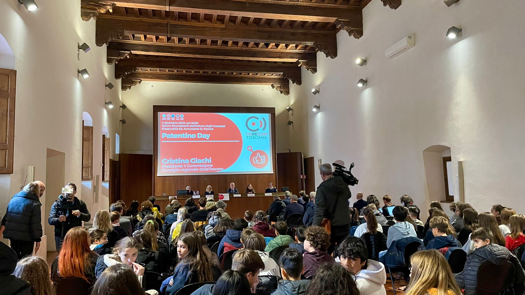 Firenze – Hanno iniziano a utilizzare la rete intorno agli 8 anni e in prima media oltre l’80 per cento di loro ha uno smartphone personale mentre il 40 per cento ha un proprio tablet. Circa la metà resta connesso 1-2 ore al giorno, un terzo tre le 3 e le 4 ore. Oltre il 70 per cento dichiara di avere la supervisione di un adulto, il 30 per cento ne è priva. Quando gli si chiede cosa potrebbe rendere più sicura la vita online, la risposta è “essere correttamente informati sui rischi e su come prevenirli”. È la fotografia ricavata da un campione di 505 studenti di prima media della nostra regione, emersa oggi nel corso del ‘Patentino Day’, giornata di approfondimento e riflessione sui risultati e sulle prospettive future del progetto del ‘Patentino digitale’ del Corecom della Toscana, realizzato in collaborazione con la Regione Toscana, l’Istituto degli Innocenti, la Polizia Postale e l’Ufficio scolastico regionale. All’iniziativa, che si è svolta questa mattina (lunedì 4 dicembre), sono intervenuti, tra gli altri, il presidente del Corecom della Toscana, Marco Meacci, la presidente della commissione Cultura del Consiglio regionale Cristina Giachi, il dirigente dell’Ufficio scolastico regionale Roberto Curtolo,  il vicequestore aggiunto in servizio presso il Compartimento Polizia postale e delle comunicazioni per la Toscana Francesco Verduci, il presidente della Regione Toscana Eugenio Giani e l’assessora all’Istruzione Alessandra Nardini, la presidente dell’Istituto dell’Innocenti Maria Grazia Giuffrida e la project manager Sara Ferruzzi. Presenti una classe dell’Istituto comprensivo ‘Il principe’ di San Casciano Val di Pesa e due classi dell’Istituto comprensivo ‘Caponnetto’ di Bagno a Ripoli.