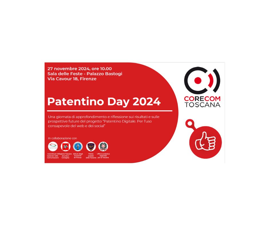 Firenze – Si terrà mercoledì 27 novembre nella sala delle Feste di palazzo Bastogi (sede del Corecom Toscana) la seconda edizione del Patentino Day, giornata di approfondimento e riflessione sui risultati e sulle prospettive future del progetto rivolto ai minori ‘Patentino digitale per l’uso consapevole del web e dei social media’.