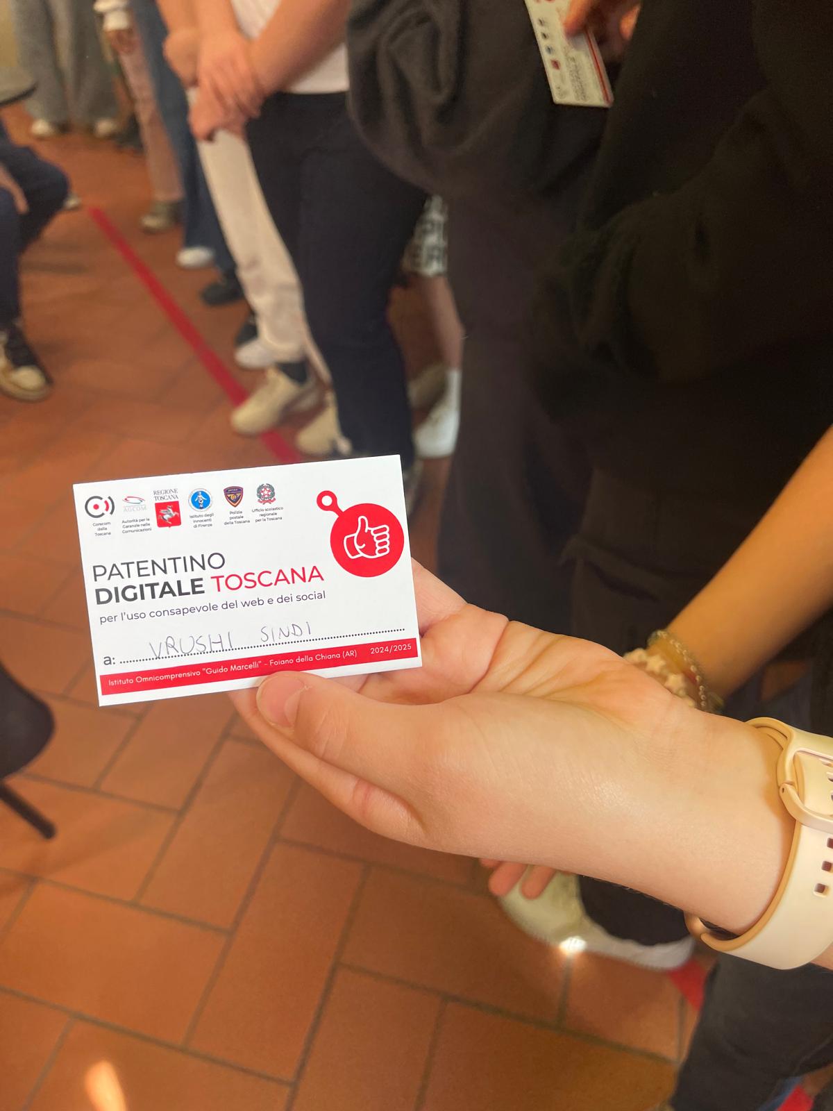 Val di Chiana (Arezzo) – Il patentino digitale viene consegnato direttamente ai ragazzi nelle scuole. “È la prima volta che entriamo in contatto con gli studenti per consegnare loro il patentino, per renderli consapevoli e responsabili per navigare nella rete in modo sicuro”. Così il presidente del Corecom, Marco Meacci, si rivolge ai circa 230 studenti delle classi di tre scuole secondarie di primo grado dell’Istituto omnicomprensivo ‘Guido Marcelli’ di Foiano della Chiana, dell’Istituto comprensivo statale ‘Rita Levi-Montalcini’ di Marciano dell’Istituto comprensivo ‘Martiri di Civitella’ di Civitella in Val di Chiana.