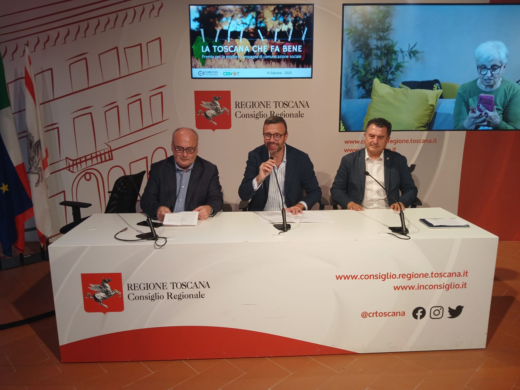 Firenze – Tornano i bandi del Corecom “La Toscana che fa bene”, che premierà la migliore campagna di comunicazione sociale, e “Toscana in spot 2025 – Minori in vetrina. I rischi dell’esposizione digitale”, che premierà, invece, i tre migliori spot audiovisivi realizzati sul tema del rischio di esporre immagini e dati dei minori in rete. I due premi sono stati presentati questa mattina, in conferenza stampa, dal presidente del Consiglio regionale, Antonio Mazzeo, dal presidente del Corecom della Toscana, Marco Meacci, e dal presidente del Cesvot, Luigi Paccosi. Presenti, per il Corecom, la vicepresidente Benedetta Baldi e Bianca Maria Giocoli.
