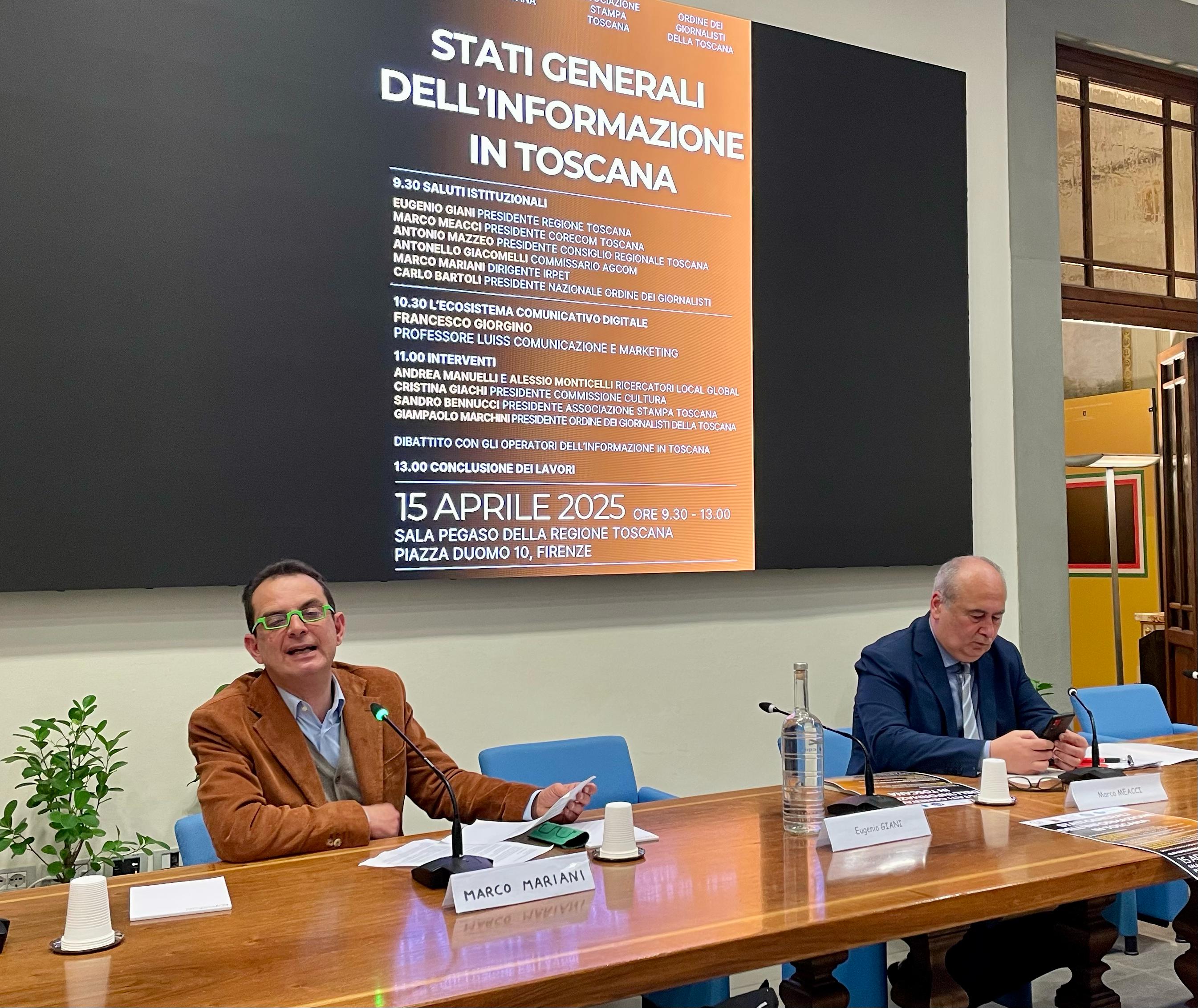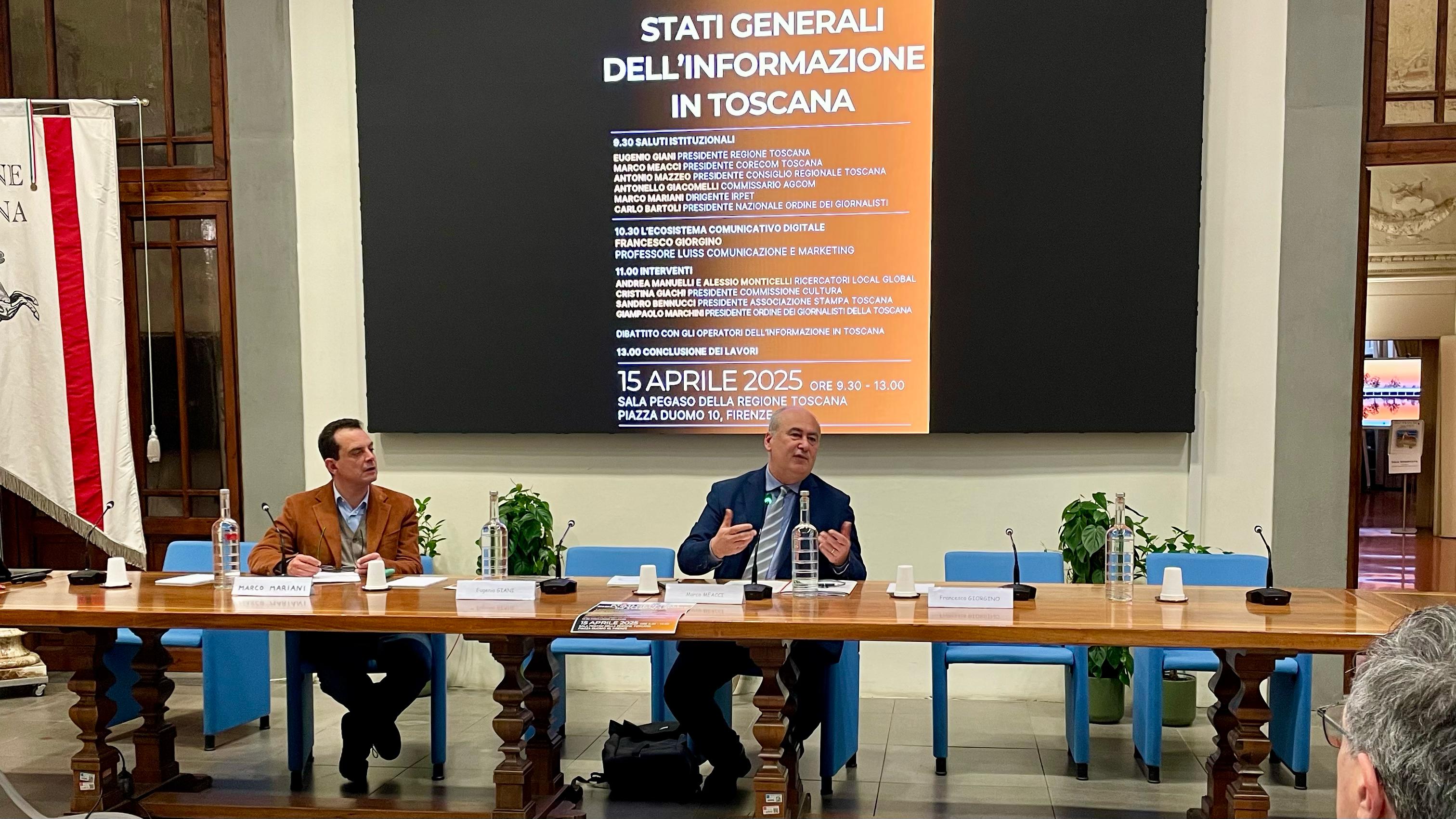 Si sono tenuti questa mattina a palazzo Strozzi Sacrati, gli ‘Stati generali dell’informazione in Toscana’, con la presentazione di un rapporto dell’Irpet. Mazzeo: “Servono ingenti finanziamenti pubblici e regole chiare”. Meacci: “Favorire strategie orientate alla cooperazione fra operatori”. Bartoli: “Un sostegno mirato e forte al settore è indispensabile”. Giacomelli: “Contributo pubblico fondamentale: pensare a un contratto in cambio di un’attività più rigorosa d’informazione”. Giani: “Apertissimo a queste ipotesi”