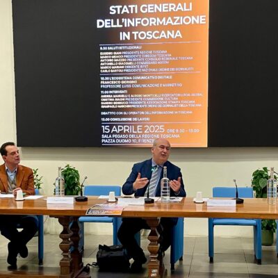 Firenze – Si sono tenuti oggi, martedì 15 aprile, presso la presidenza della Regione, a palazzo Strozzi Sacrati gli Stati generali dell’informazione in Toscana. L’incontro è stato organizzato dal Corecom della Toscana insieme a Regione, Associazione stampa e Ordine dei giornalisti della Toscana. L’appuntamento è l’atto conclusivo di un percorso che ha visto coinvolti gli operatori dell’informazione della regione. Nella fase preparatoria, si sono tenuti ‘focus group’ con rappresentanti delle emittenti televisive, delle radio, della stampa quotidiana e delle testate online.