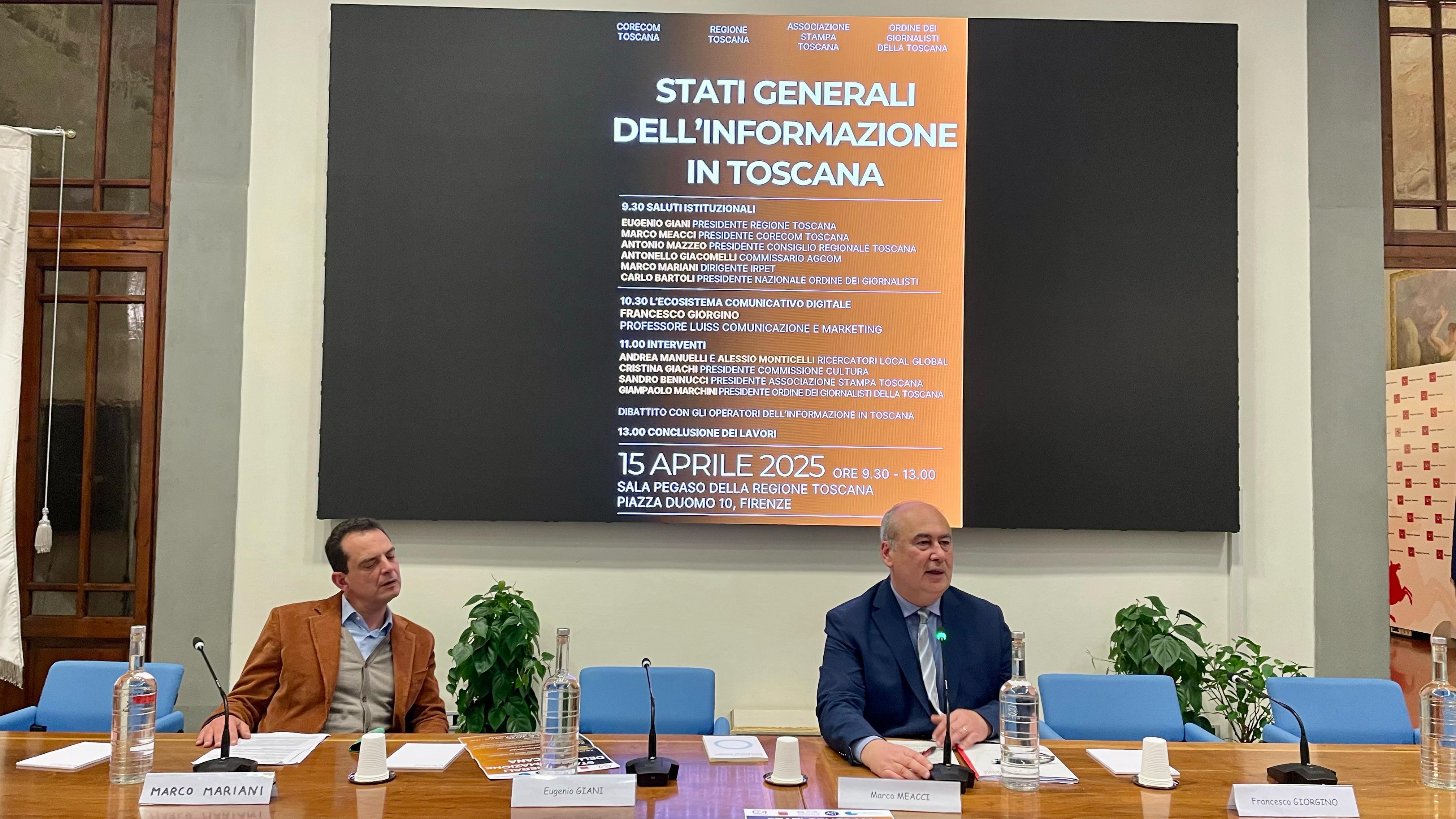 “Viviamo un’epoca di profonda trasformazione: il modo in cui si produce, si diffonde e si consuma informazione è cambiato radicalmente negli ultimi anni, mettendo in discussione modelli consolidati e aprendo scenari nuovi, spesso incerti”, spiega il presidente del Corecom, Marco Meacci. “I problemi sono molteplici: precarizzazione del lavoro giornalistico, che incide sulla qualità e sull’indipendenza della informazione, concentrazione delle proprietà editoriali, fragilità economica delle piccole testate locali, spesso essenziali per la coesione sociale e la democrazia territoriale, urgenza di sviluppare una educazione critica ai media, soprattutto tra i giovani per affrontare la sovrabbondanza di informazioni e la disinformazione”. Nel panorama toscano, dice ancora Meacci, “questi temi si intrecciano con specificità locali: un sistema informativo vivace ma spesso sottofinanziato. È evidente a tutti l’importanza strategica che riveste l’ecosistema informativo locale, che svolge a tutti gli effetti un ruolo di ‘servizio pubblico’. In generale, si tratterebbe di favorire una serie di strategie orientate alla cooperazione fra soggetti economici locali che abbiano la finalità di creare massa critica e agganciare alcune traiettorie di rilancio e di sviluppo del settore che passano dall’aumento di produttività, da adeguati livelli di redditività, e in primis dalla qualità dei prodotti e dei contenuti. In questo senso, le istituzioni, Regione in primis, possono svolgere un ruolo fondamentale di supporto e garanzia. Il Corecom è a disposizione come organismo settoriale della comunicazione per fornire informazioni e monitorare lo sviluppo del settore.”