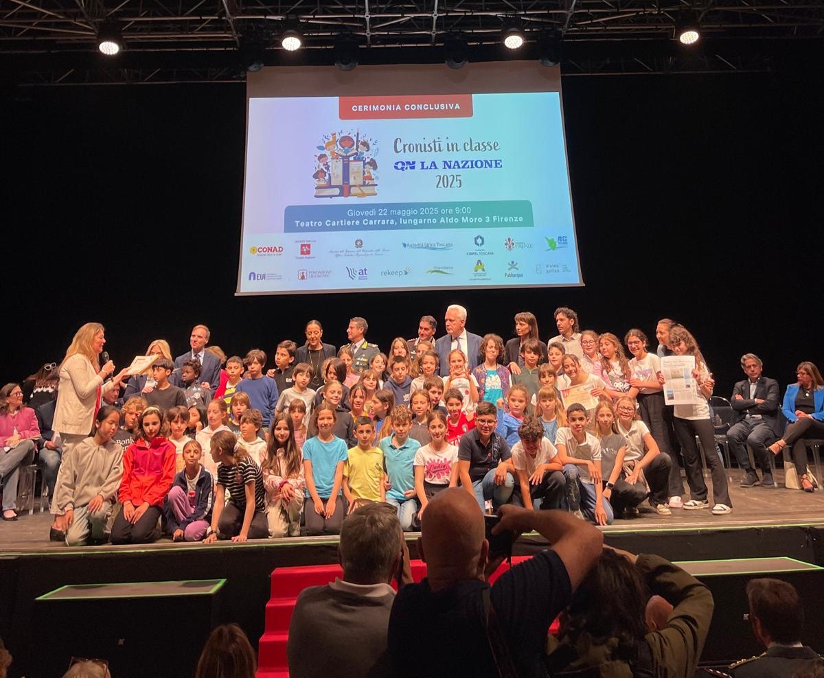 Firenze – Una platea, quella del teatro Cartiere Carrara a Firenze, questa mattina, gremita di studenti delle classi IV e V della scuola primaria e dell’intero ciclo della secondaria di primo grado. Oltre 1200 i ragazzi presenti, provenienti da più di 60 scuole fiorentine, che in questi mesi hanno scritto, supervisionati dai loro insegnanti, tanti articoli pubblicati poi sulle pagine de La Nazione tra febbraio e maggio. Sul palco tanti i rappresentanti istituzionali, delle associazioni di categoria e di enti ed aziende che hanno sostenuto il progetto, giunto alla XXIII edizione.