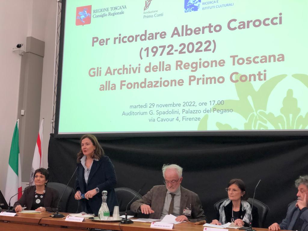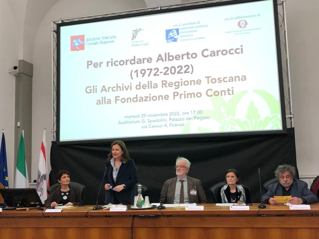 A fare gli onori di casa Cristina Giachi, presidente della commissione Istruzione e cultura dell’Assemblea legislativa toscana: “Si tratta di un’iniziativa per valorizzare gli archivi Primo Conti. Carocci fu uno scrittore, ma interpretò il suo talento anche come organizzatore di cultura e promotore di riviste che hanno segnato la storia del Novecento e ci consentono di tessere la storia della letteratura, ma anche della presenza degli intellettuali in Italia in quel tempo. Una delle ultime riviste promosse da Carocci aveva come condirettore Pier Paolo Pasolini. Parliamo di figure che hanno fatto la storia del nostro Paese”.