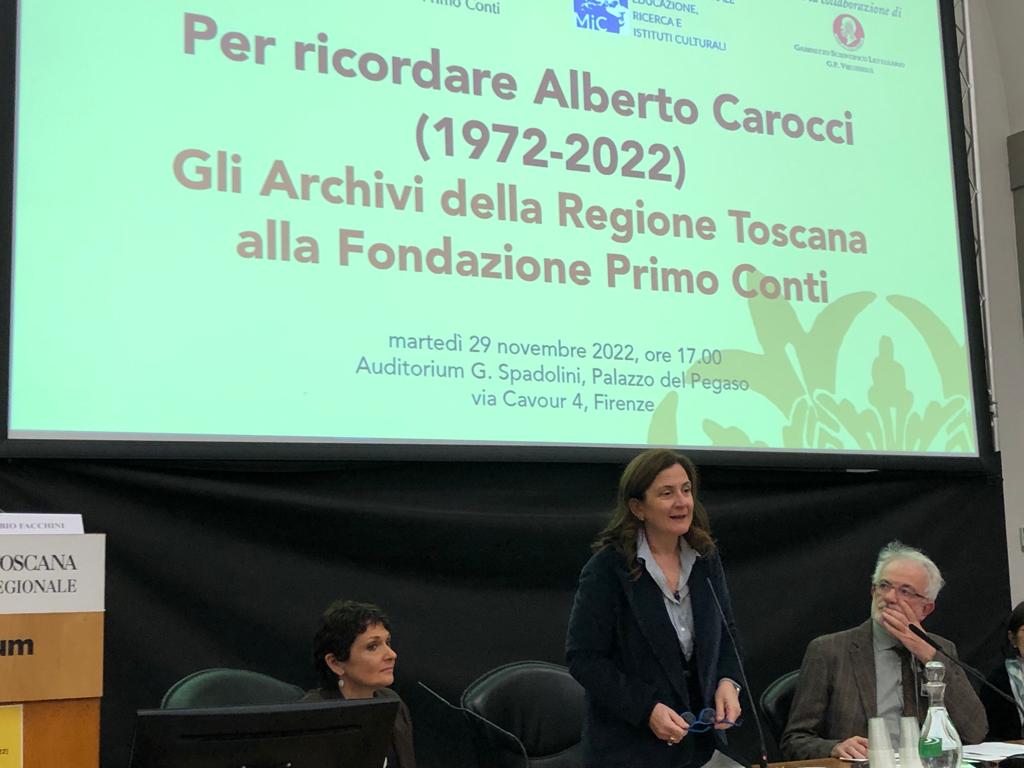 Michele Di Sivo, della Soprintendenza archivistica e bibliografica per la Toscana, ha spiegato che “la Fondazione Primo Conti conserva più di venti archivi di rilevanza storica e, tra questi, quello di Alberto Carocci è sicuramente uno dei più importanti”. “La Soprintendenza – ha concluso – ha rapporti intensi con la Fondazione e con Regione Toscana e con loro sviluppa e realizza tanti progetti”.