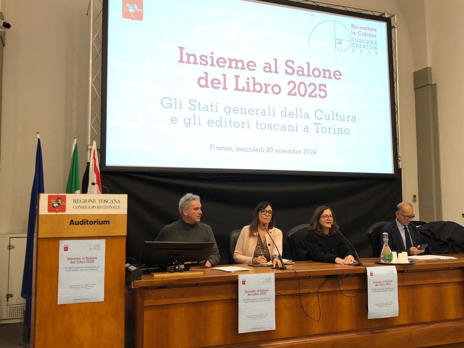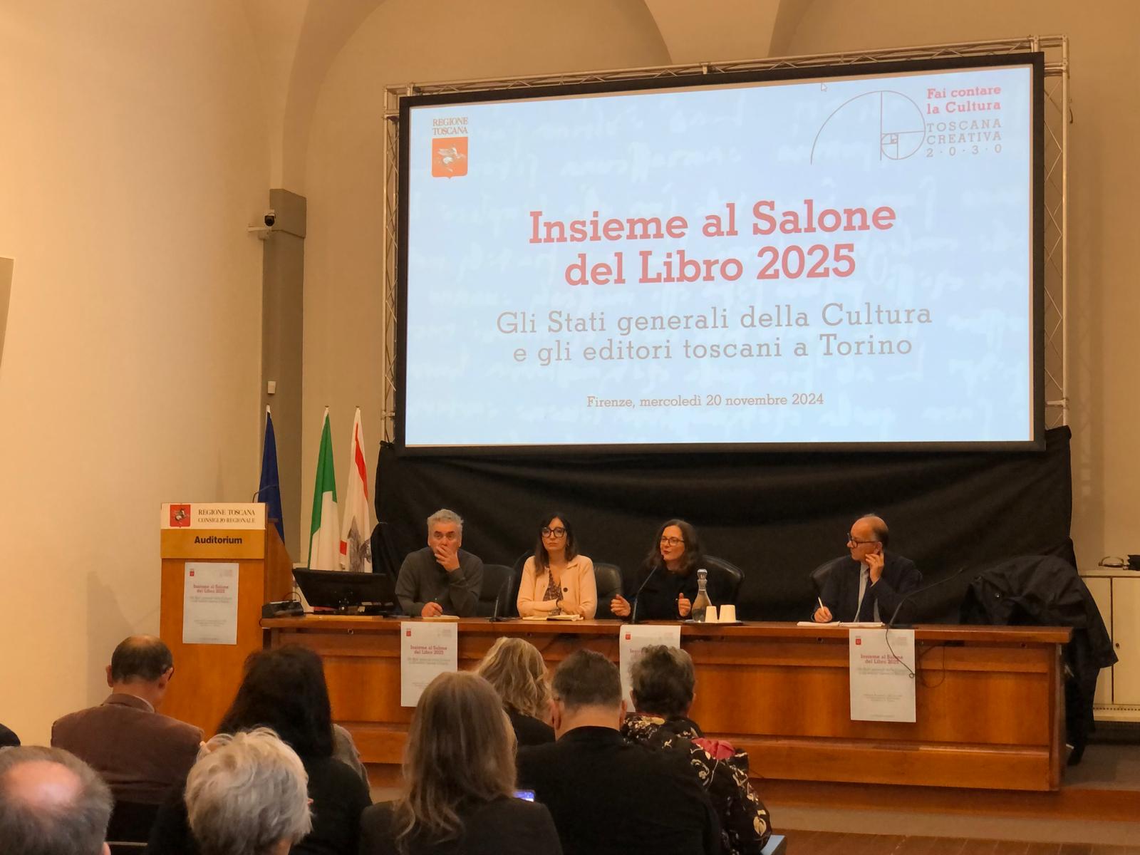 “Nell’ambito degli Stati Generali della Cultura – ha spiegato la presidente Giachi – un anno fa abbiamo avviato una riflessione e un rilancio della partecipazione toscana ai grandi saloni nazionali e principalmente al Salone del Libro di Torino. Dopo il successo del treno dei lettori e dei due bandi di Giunta e Consiglio regionale per sostenere l’editoria e la partecipazione degli editori toscani sia grandi che medio-piccoli al Salone del 2024, oggi li abbiamo incontrati per fare il punto e valutare tutte le richieste e le opportunità per l’edizione del 2025”.