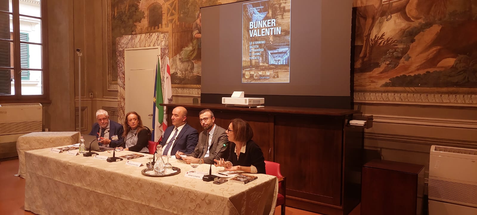 Firenze – “Bunker Valentin. Lo sterminio nazista attraverso il lavoro forzato” (Edizioni Chartesia), questo il volume, di Silvia Pascale e Orlando Materassi, che è stato presentato in sala Affreschi di palazzo del Pegaso. Ai saluti di Antonio Mazzeo, presidente dell’Assemblea toscana e di Cristiano Benucci, consigliere regionale, è seguito l’intervento di Monica Marini, sindaco di Pontassieve e degli autori Silvia Pascale e Orlando Materassi. Erano presenti il vicepresidente del Consiglio regionale Marco Casucci e il consigliere regionale Fausto Merlotti.