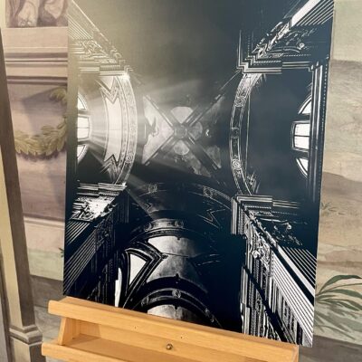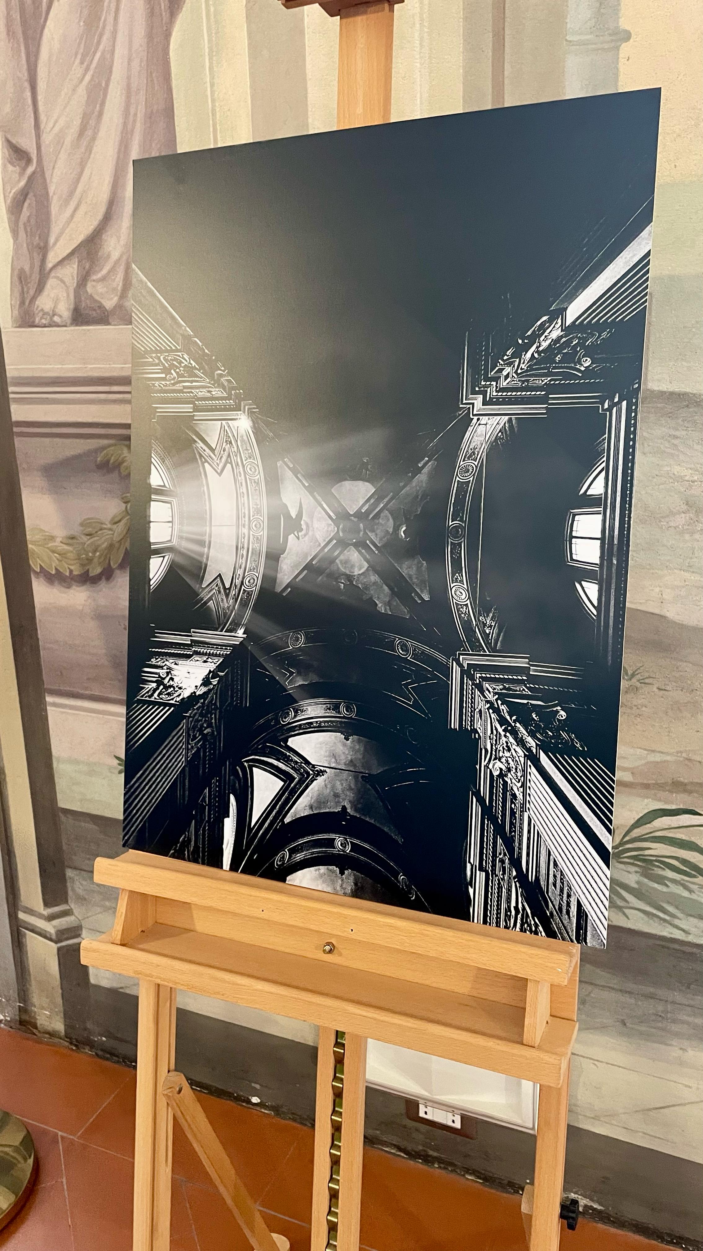 Massa Dreams è una fotografia d’arte in bianco e nero realizzata da Filippo Papa nel 2024, parte dell’omonima serie esposta per la prima volta nella città di Massa. L’opera, intitolata “Massa Dreams 12”, cattura un angolo celeste e teatrale di un’architettura sacra, trasfigurata attraverso un sapiente uso della luce e della composizione prospettica. La luce radente, che penetra da finestre architettoniche simmetriche, crea un’atmosfera sospesa, quasi ultraterrena. I fasci luminosi tagliano il buio con forza mistica, rivelando con pudore i dettagli strutturali e generando un contrasto espressivo tra visibile e invisibile. Le geometrie dell’immagine si piegano all’occhio dell’artista, che costruisce una visione interiore, onirica, speculare. L’intersezione di archi, colonne e aperture disegna un sogno verticale, un invito alla trascendenza.