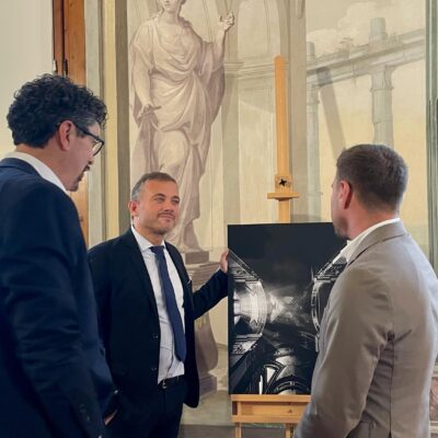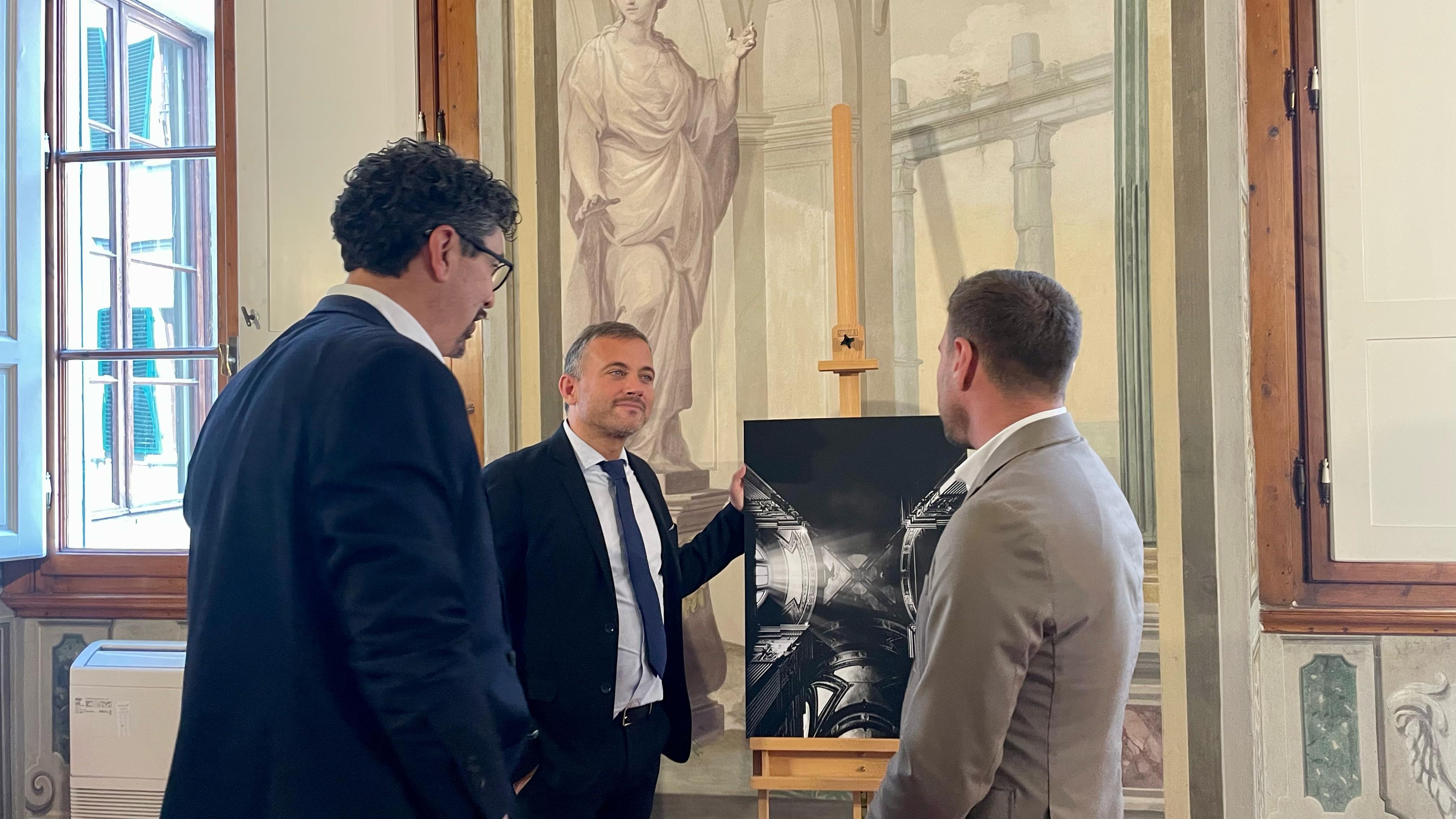 Alle 14.00 l’artista ha donato una sua opera fotografica al Consiglio regionale alla presenza del Consigliere regionale Giacomo Bugliani e del capo di gabinetto Francesco Sangermano.