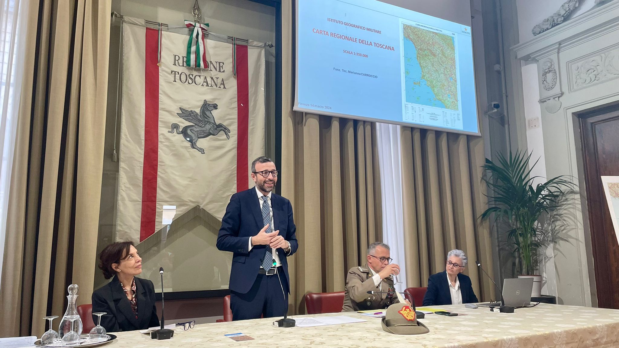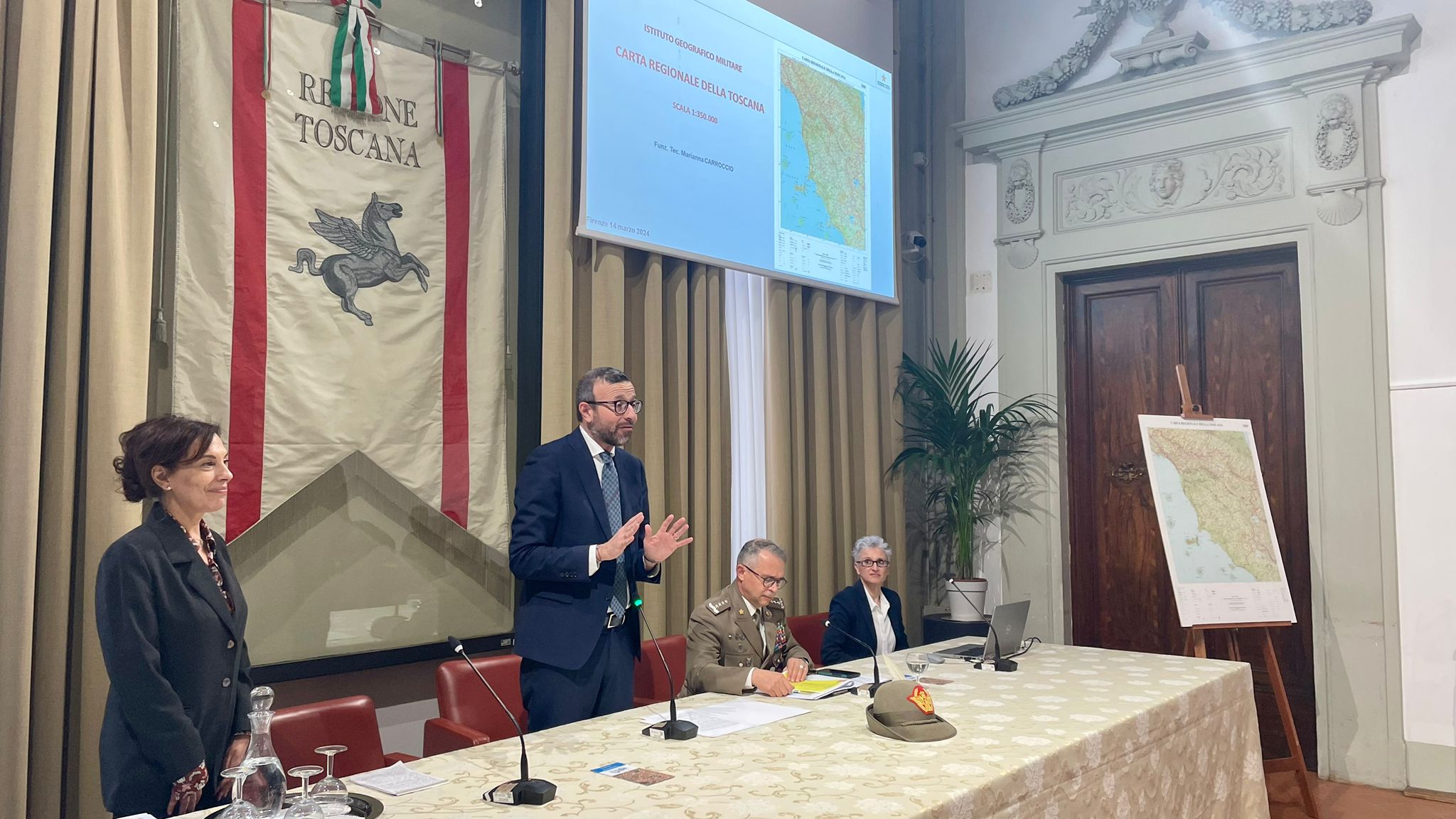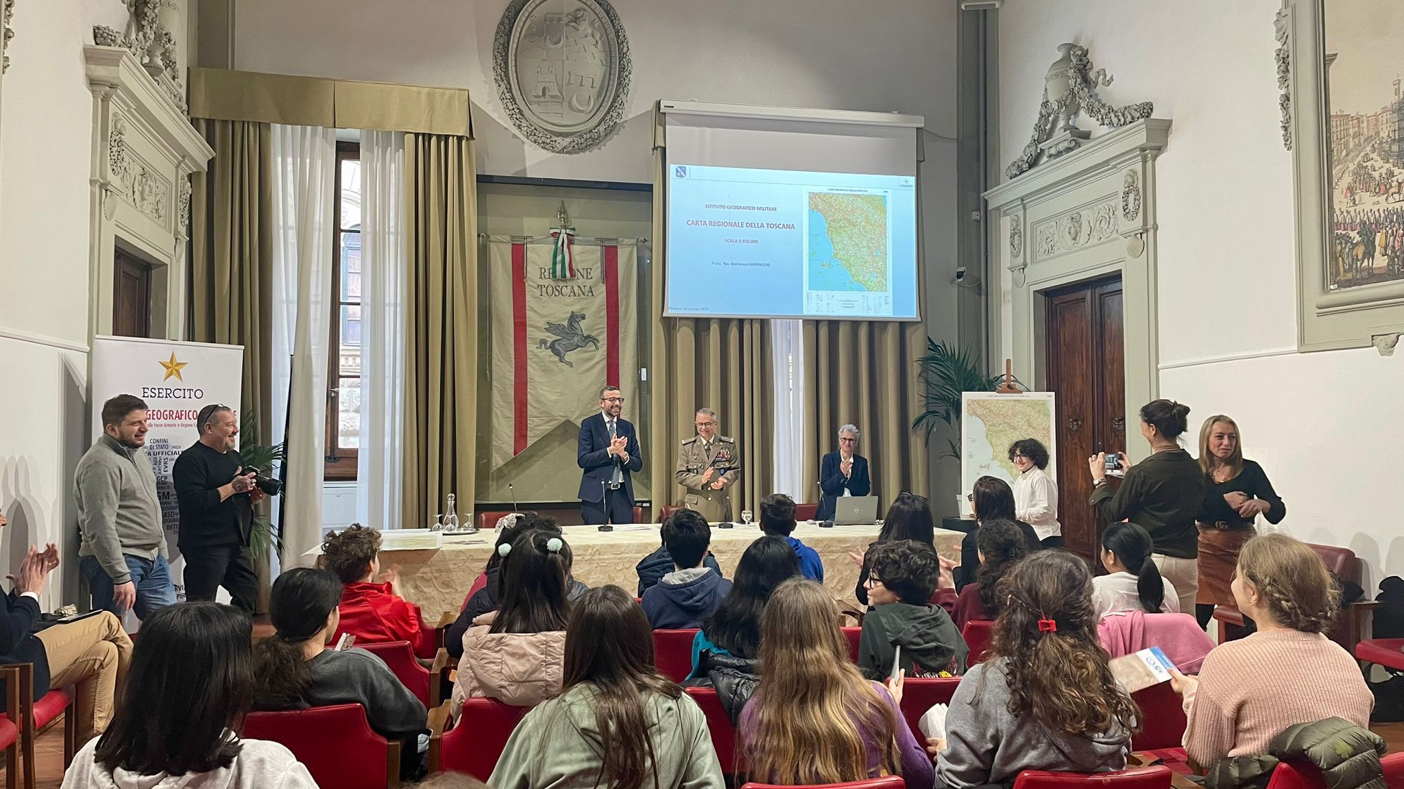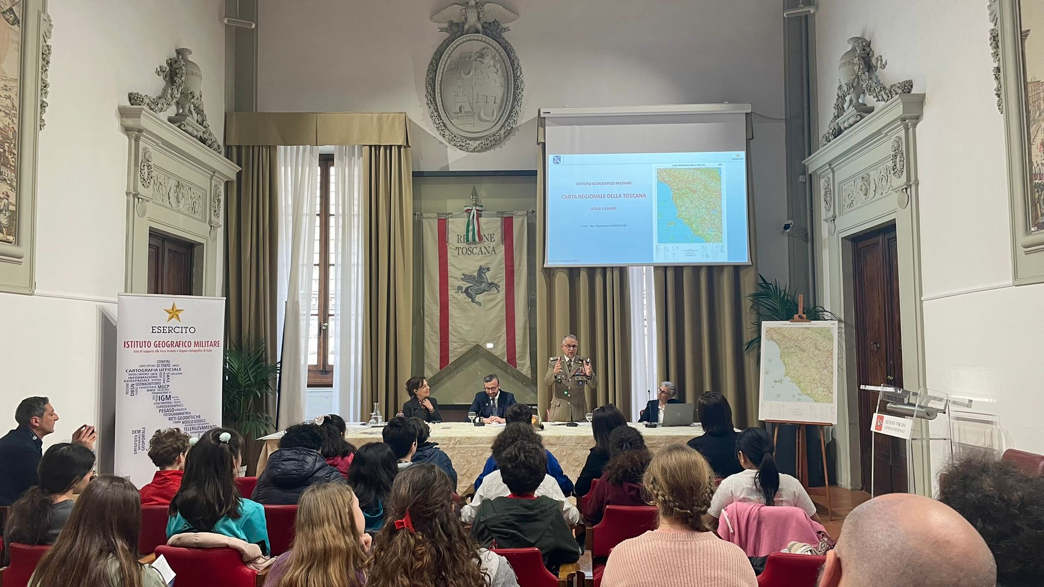 Per l’Istituto Geografico Militare ha rivolto il saluto istituzionale, il Generale di Corpo d’Armata Massimo Panizzi , Comandante dell’ente, che ha ribadito: “La parola chiave è sinergia, il fatto che l’Istituto Geografico lavori per i giovani attraverso la Regione è fondamentale” e “fare cultura della geografia vuol dire rendere i ragazzi consapevoli della sua importanza, significa conoscenza del territorio e delle sue caratteristiche, delle genti e delle problematiche; in ultima analisi, appassionarsi al territorio”.