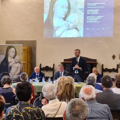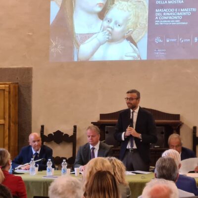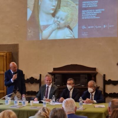 Il tempo di Masaccio, spiega Mazzeo, “per certi versi ha caratteristiche simili al nostro: anche noi viviamo in un tempo di contraddizioni. La pandemia ci segnala la fragilità del progresso umano, la necessità di assunzioni di responsabilità più forti da parte dell’umanità nelle scelte, i limiti e le potenzialità della globalizzazione e il valore non fideistico della scienza. La guerra, che da un mese insanguina la nostra Europa, ci dice la precarietà di qualsiasi condizione e ci obbliga a dare più forza ai valori autentici della convivenza”. Un tempo complesso, “che può far germogliare un’epoca nuova, proprio come lo furono i primi anni del Quattrocento”. E oggi come allora, l’esigenza di cambiamento chiama in causa “anche la politica e le istituzioni. Ho voluto caratterizzare la mia presidenza del Consiglio regionale lanciando il progetto Toscana 2050 proprio per cogliere la sfida di questo cambiamento possibile e orientare le politiche regionali per favorirlo”.