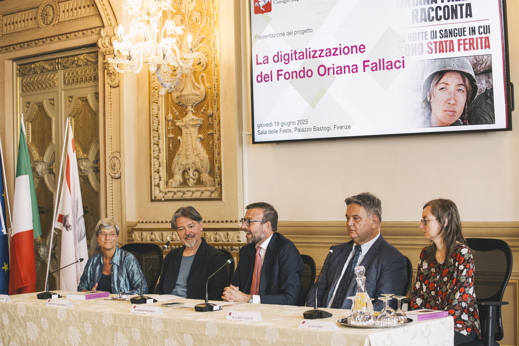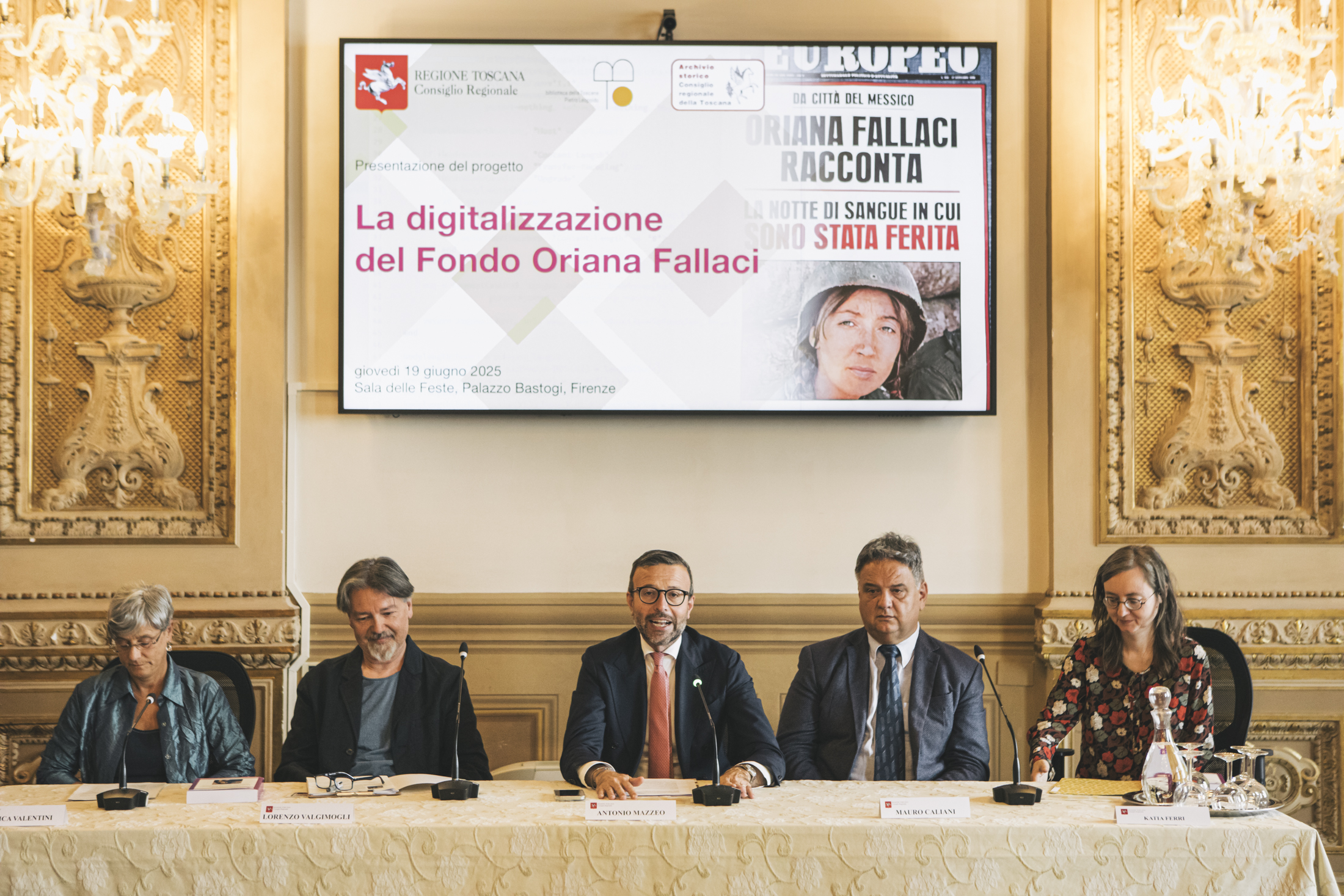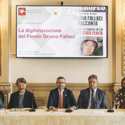 Firenze – I quasi duemila documenti che comprendono manoscritti, lettere, fotografie, oggetti personali, dischi, audiocassette, e gli 823 libri del Fondo Oriana Fallaci del Consiglio regionale della Toscana, tra i tre più importanti al mondo dedicati alla scrittrice, saranno presto interamente digitalizzati e resi così più accessibili e protetti dal possibile deperimento. Un progetto fortemente voluto dallo stesso Consiglio regionale, che è stato presentato questa mattina nella sala delle Feste di Palazzo Bastogi. Sono intervenuti il presidente Antonio Mazzeo; Lorenzo Valgimogli, vice soprintendente della Soprintendenza Archivistica e Bibliografica della Toscana; Mauro Caliani, dirigente del Settore Informatica, Archivio e protocollo, Comunicazione Web, URP del Consiglio regionale; Monica Valentini e Katia Ferri, funzionarie e conservatrici del Fondo Oriana Fallaci presso il Consiglio regionale e curatrici del volume “Il cuore in Toscana: il Fondo Oriana Fallaci: inventario archivistico e catalogo bibliografico”; Gian Marco Di Domenico, presidente del Consiglio di amministrazione del Consorzio CSA.