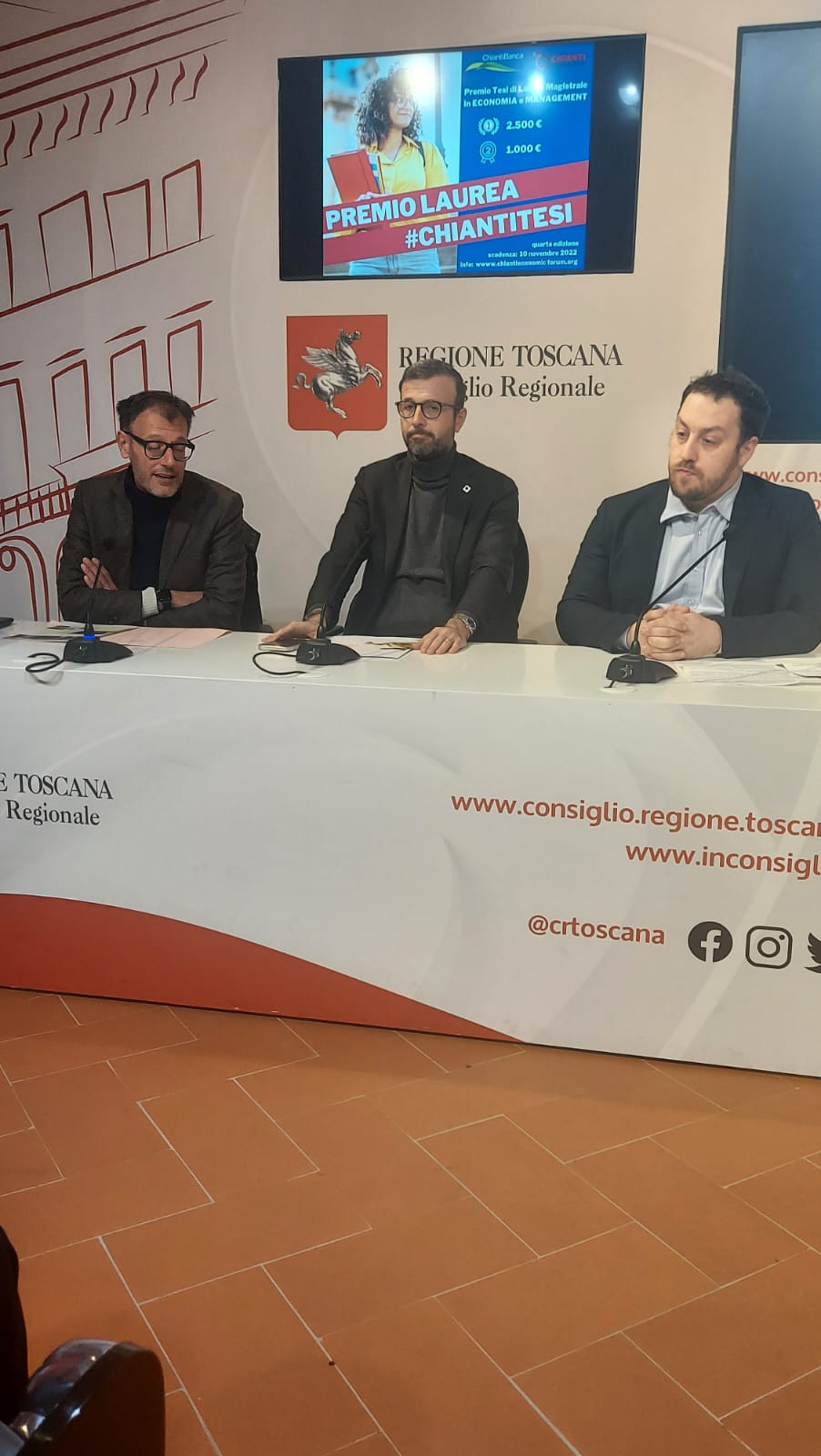 All’interno del Forum il Premio #ChiantiTesi, promosso da Chianti Banca. L’iniziativa è stata presentata da Antonio Mazzeo, presidente dell’Assemblea toscana, dal consigliere regionale Massimiliano Pescini e da Davide Borghi, responsabile del Chianti Economic Forum