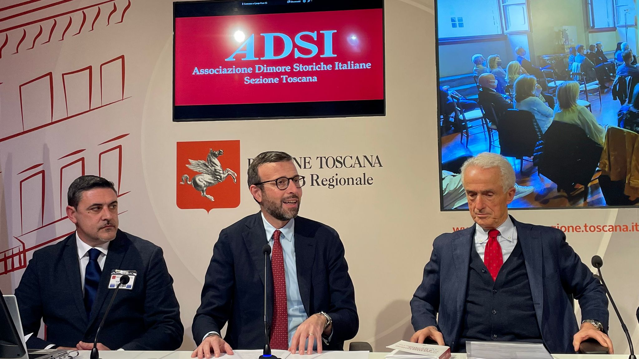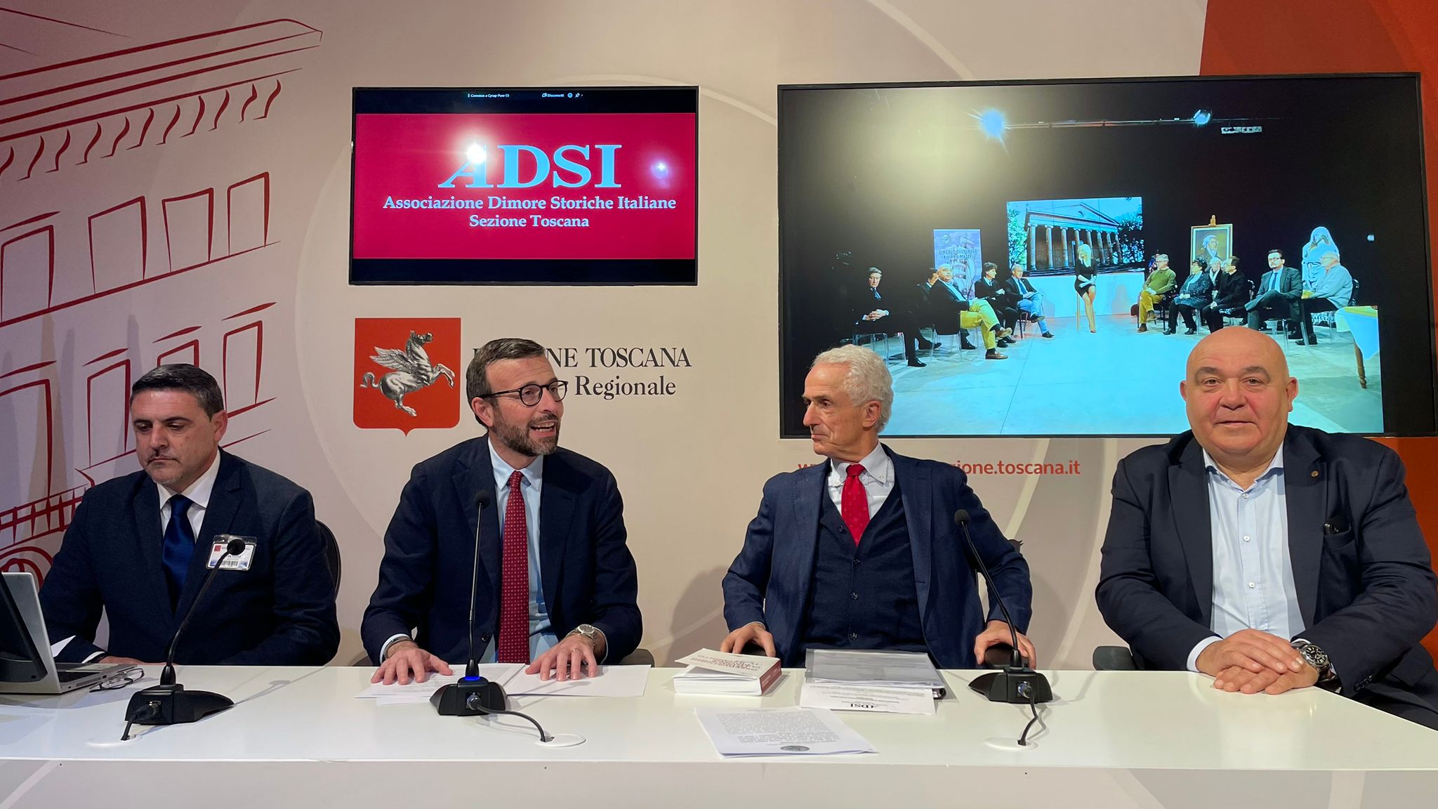 Sono intervenuti il presidente del Consiglio regionale Antonio Mazzeo; il presidente del Circolo Culturale Filippo Mazzei, Massimo Balzi; il presidente Adsi Toscana Tomaso Marzotto di Caotorta; la responsabile programmazione eventi Adsi Toscana Clotilde Corsini; il coordinatore del gruppo imprese Circolo Mazzei, Fabrizio Greco.