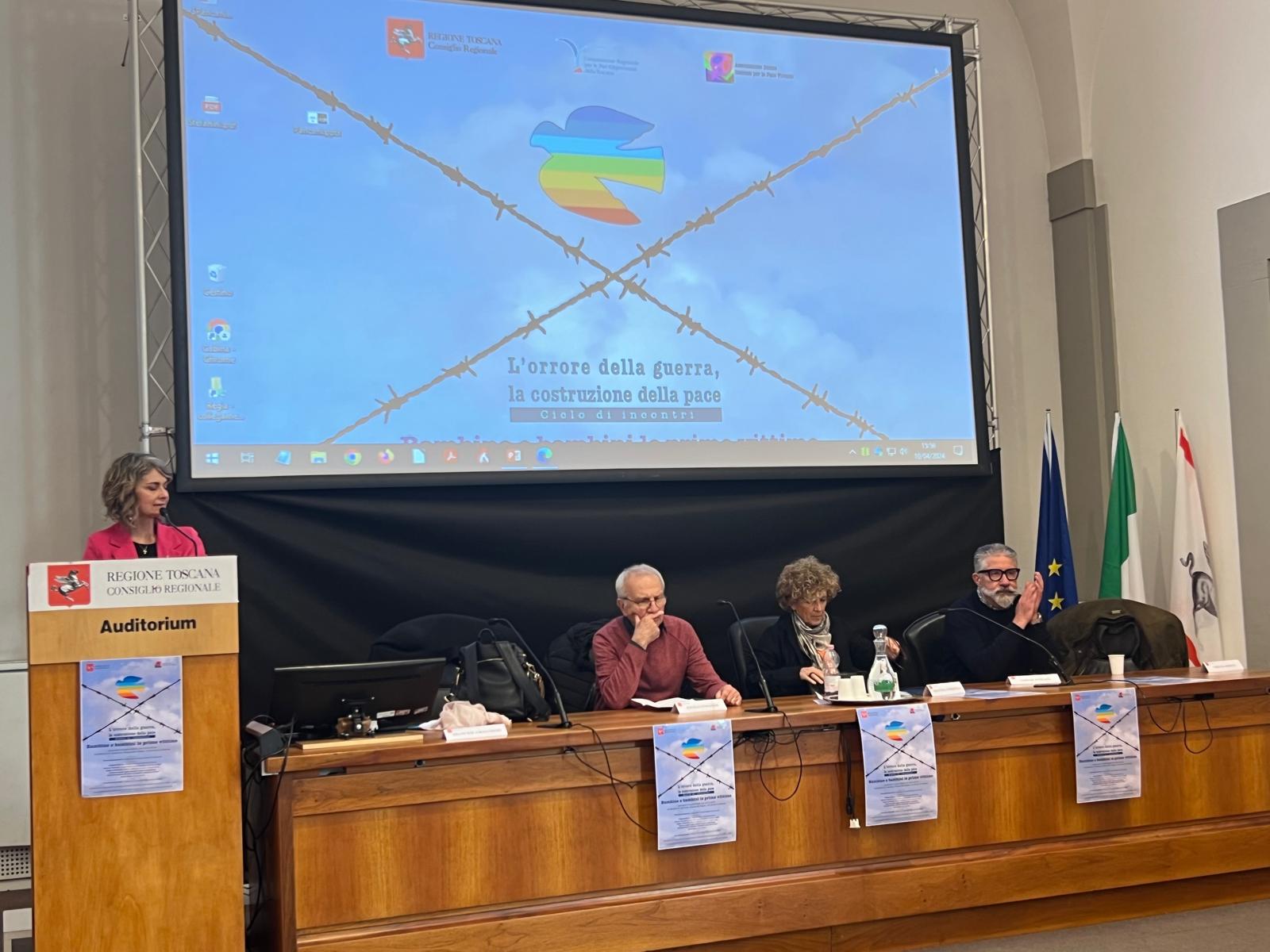 “Con l’Associazione Donne insieme per la Pace abbiamo deciso di non restare indifferenti di fronte ai molti conflitti che coinvolgono donne e bambini nel mondo – ha detto Francesca Basanieri presidente della commissione Regionale Pari Opportunità – e vorrei ricordare che sono 500 milioni i bambini coinvolti in situazioni di guerra ed ogni giorno muoiono circa ventidue bambini. Noi come Occidente, nei paesi in pace, non possiamo voltarci dall’altra parte e dobbiamo cercare di aiutare chi si trova in condizioni di difficoltà. Oggi sentiremo le testimonianze di chi lavora sul campo degli aiuti umanitari, comprendendo che le ferite non sono soltanto fisiche, ma anche psicologiche. Quindi dobbiamo lavorare per costruire un futuro diverso per questi bambini che si trovano in condizioni di estrema difficoltà”.