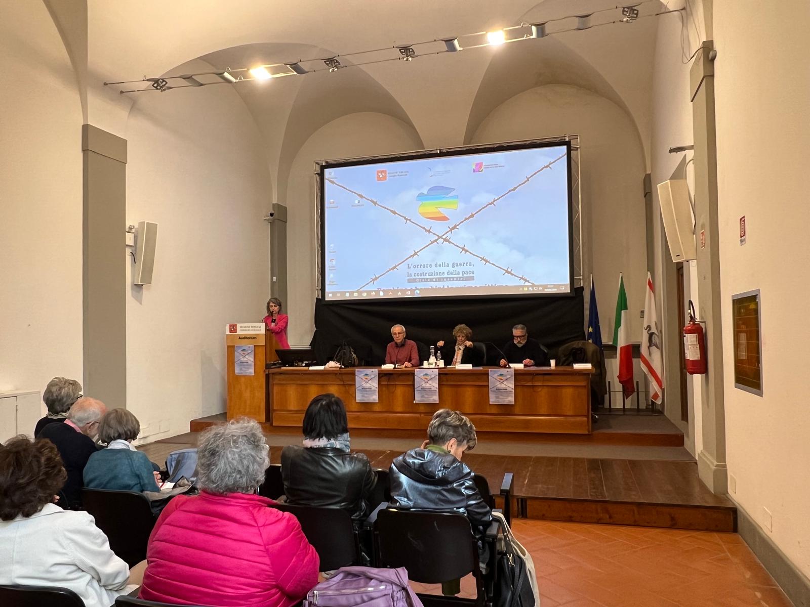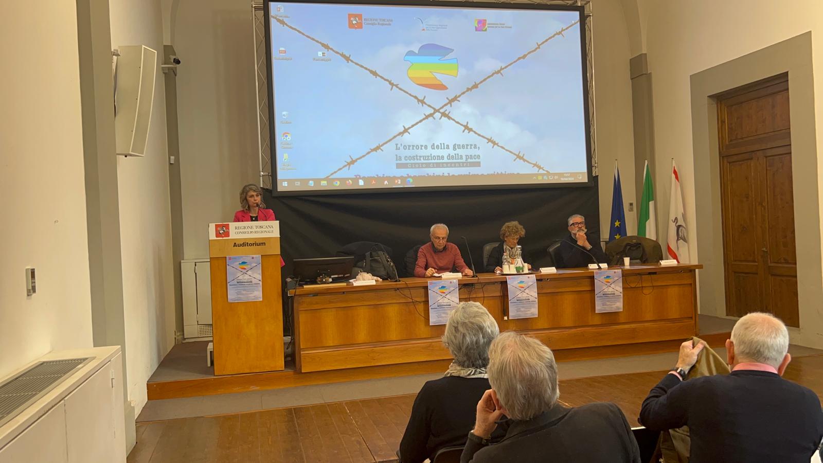 Firenze – All’auditorium Spadolini a palazzo del Pegaso si è svolto il secondo incontro di un ciclo di appuntamenti che la commissione pari opportunità della Toscana, in collaborazione con il gruppo ‘Donne insieme per la pace Firenze’, ha organizzato per stimolare dialogo, convivenza e riconoscimento reciproco all’interno della società civile e per evidenziare il valore della pace, il rifiuto delle guerre e della violenza come risoluzione dei conflitti.