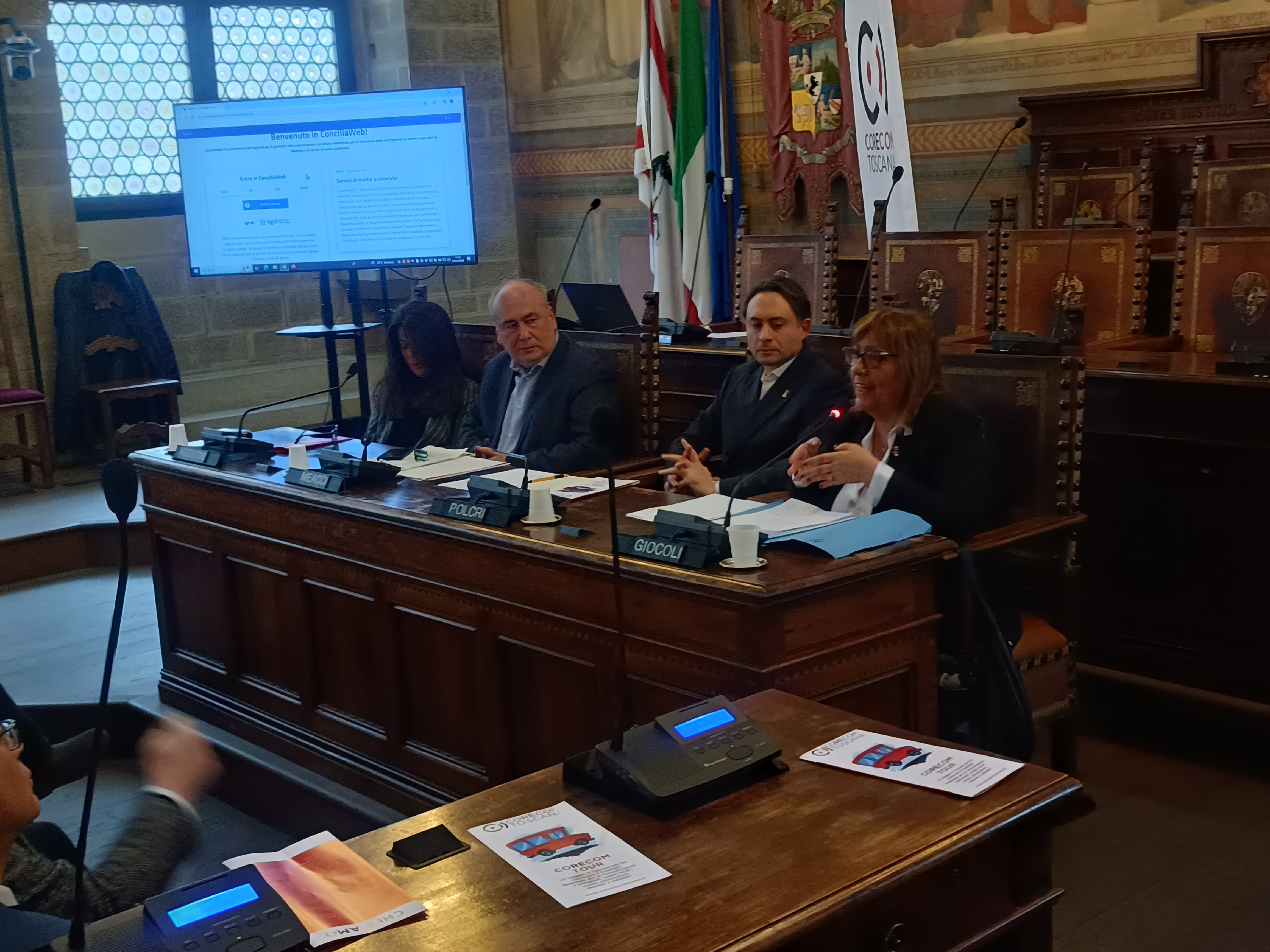 Alla giornata aretina del Corecom hanno preso parte anche i consiglieri regionali del territorio, Vincenzo Ceccarelli (Pd), Marco Casucci (Lega) e Gabriele Veneri (Fratelli d’Italia).