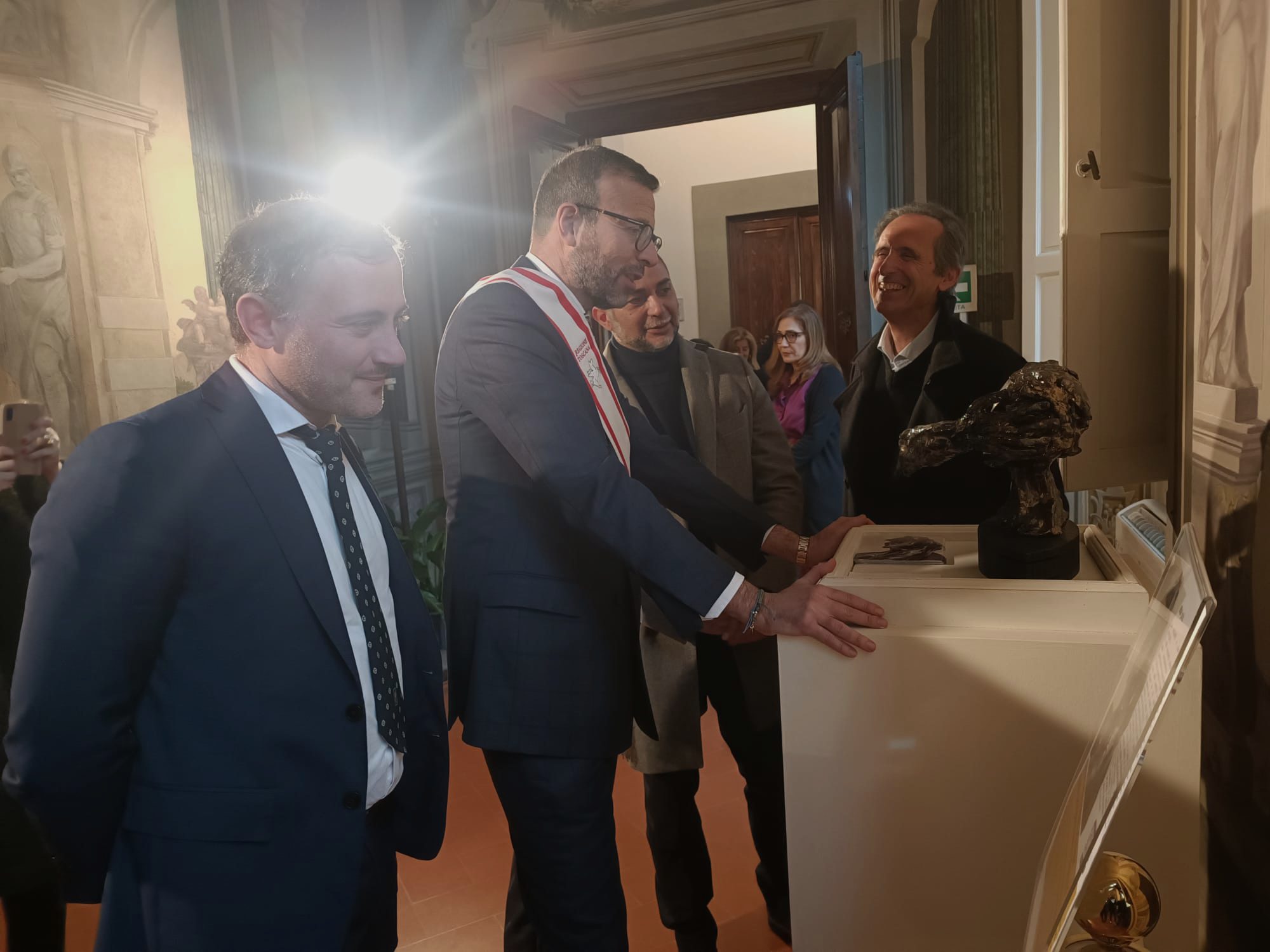 Firenze – Un’opera che diventa “strumento positivo di governo del territorio perché parla alle persone, le sprona a riflettere e aiuta il progresso della comunità”. Così il consigliere regionale Giacomo Bugliani esprime soddisfazione per l’opera Mai più di Valente Cancogni da ieri, martedì 11 febbraio, entrata a pieno titolo nel patrimonio artistico di palazzo del Pegaso, sede dell’Assemblea legislativa.