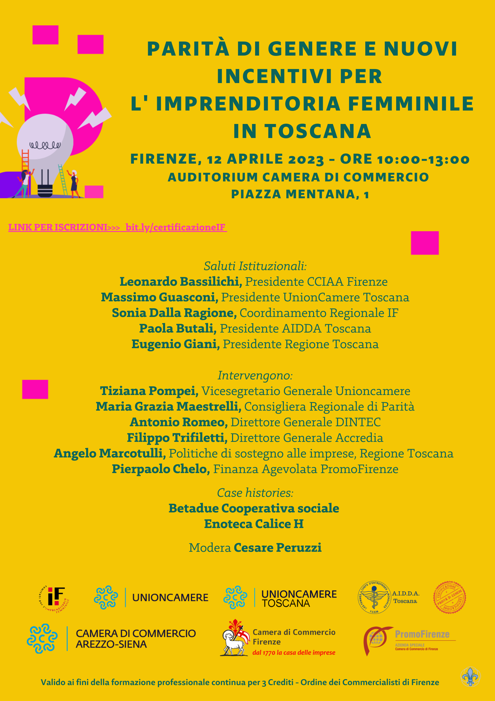 La consigliera regionale Elena Rosignoli chiarisce il valore dell’iniziativa: “Vogliamo promuovere questo importante evento che si terrà alla Camera di commercio di Firenze per favorire la possibilità per le imprese di aderire alla certificazione di genere, investire in politiche di contrasto alle discriminazioni sia salariali che comportamentali, con incentivi anche economici per le aziende. Il Consiglio regionale è stato molto attento – aggiunge la consigliera – in occasione della modifica alla legge regionale 71/2017 sono state inserite indicazioni per le aziende, con l’approvazione anche della proposta di risoluzione. Fatti concreti che danno la possibilità alle donne, alle imprese in genere e all’imprenditoria femminile in particolare di fare passi avanti nella direzione della parità di genere”.