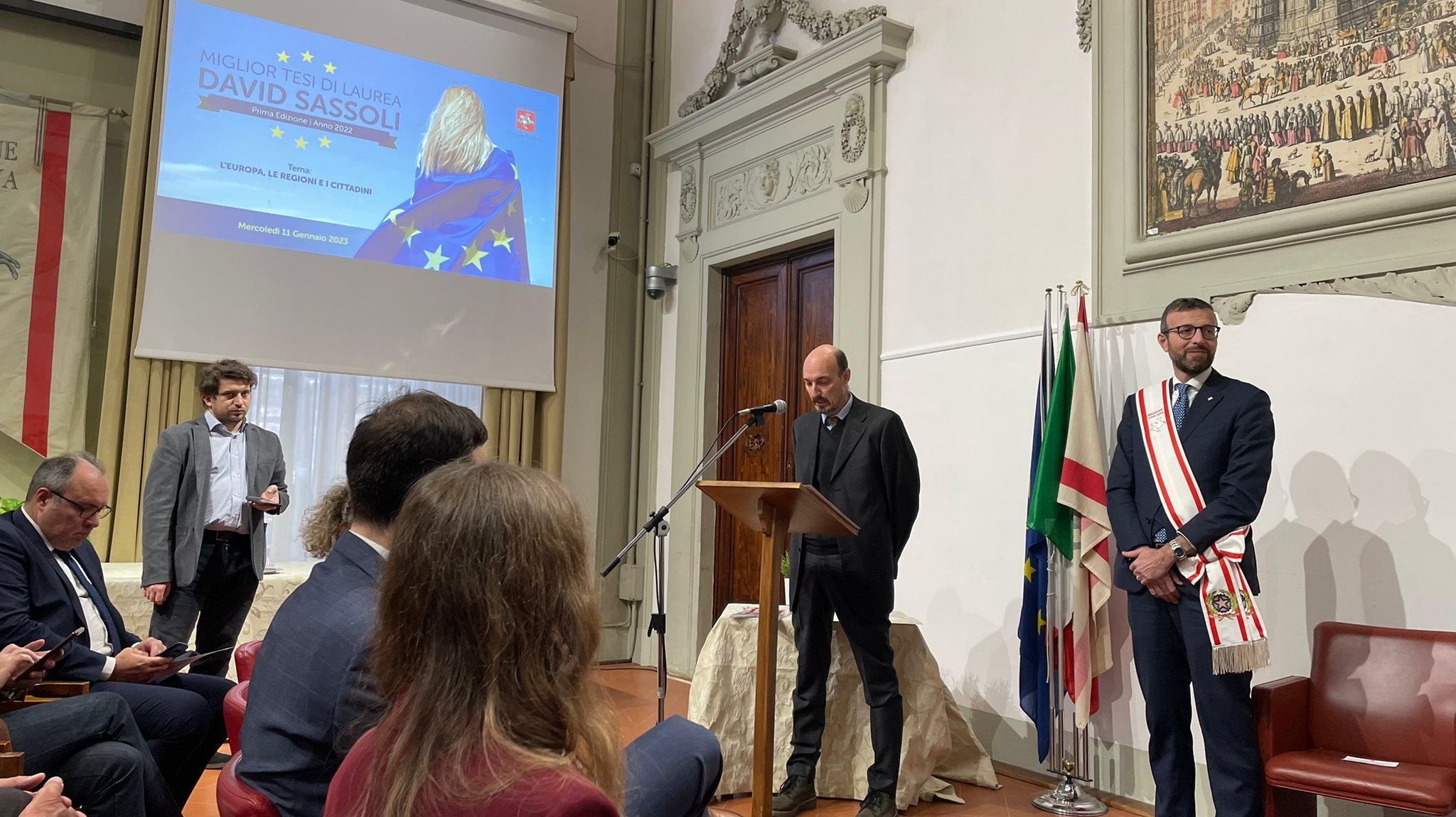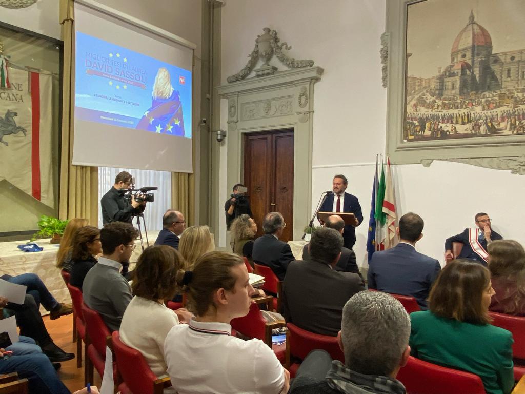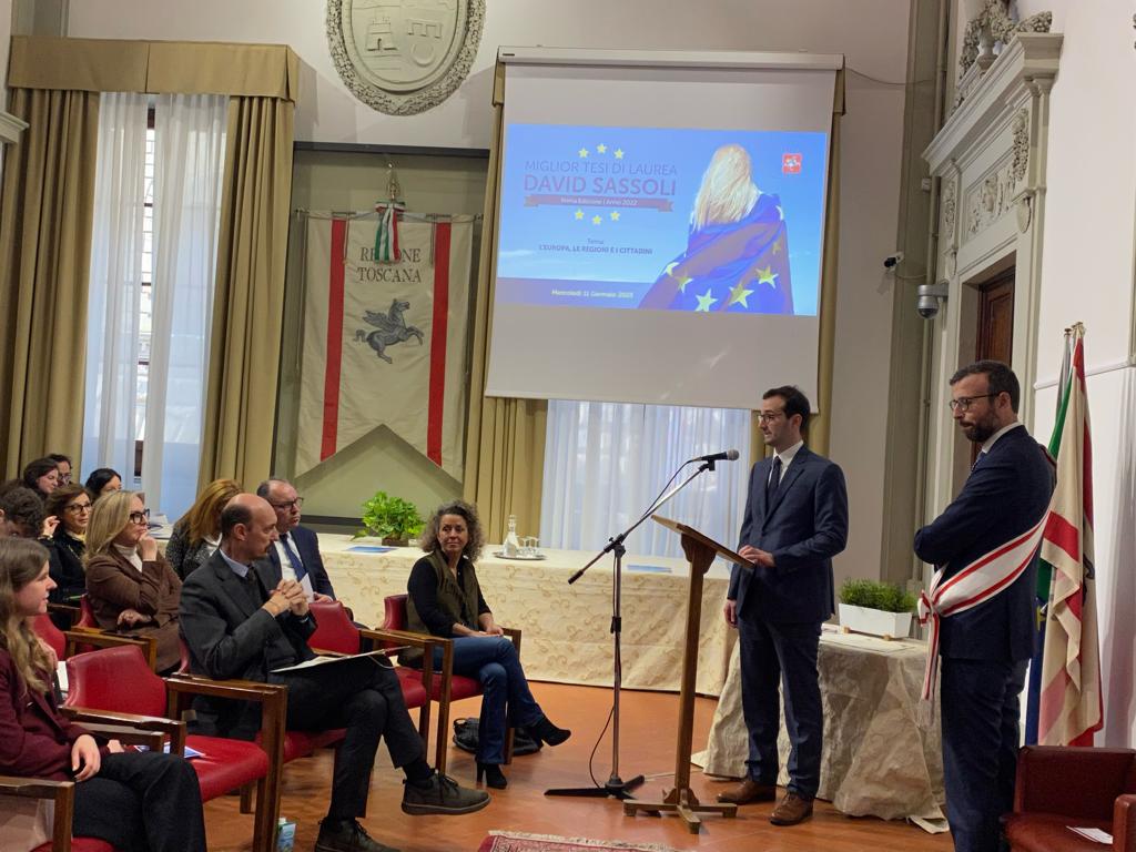 Firenze – A un anno dalla scomparsa dell’ex presidente del Parlamento europeo, si è tenuta a palazzo del Pegaso la cerimonia di conferimento del premio a lui intitolato ‘Miglior tesi di laurea David Sassoli’. ‘L’Europa, le regioni e i cittadini’ il tema della prima edizione del riconoscimento rivolto a giovani laureati degli atenei toscani. Bandito nel 2022 dal Consiglio regionale della Toscana in attuazione della deliberazione dell’Ufficio di Presidenza, d’intesa con la commissione Politiche europee e relazioni internazionali, il Premio ha l’obiettivo di ricordare il pensiero e l’azione di Sassoli, incrociando la sua memoria con le idee delle giovani generazioni toscane e con le riflessioni sul rapporto tra Regioni ed Europa.