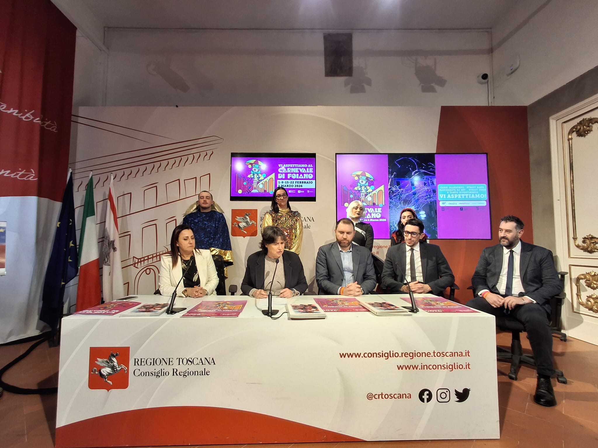 Alla conferenza stampa sono intervenuti la presidente del Consiglio regionale della Toscana Stefania Saccardi, l’assessore regionale Filippo Boni, la consigliera regionale Roberta Casini, il sindaco di Foiano Jacopo Franci, il presidente dell’associazione Carnevale Andrea Capannelli. Erano presenti il vicesindaco Gabriele Corei e l’assessore alla cultura del comune di Foiano Riccardo Reali.