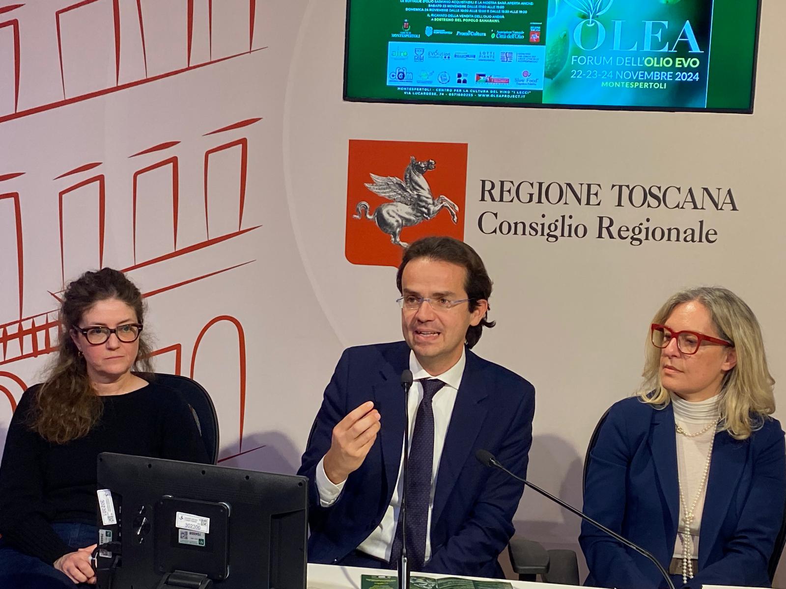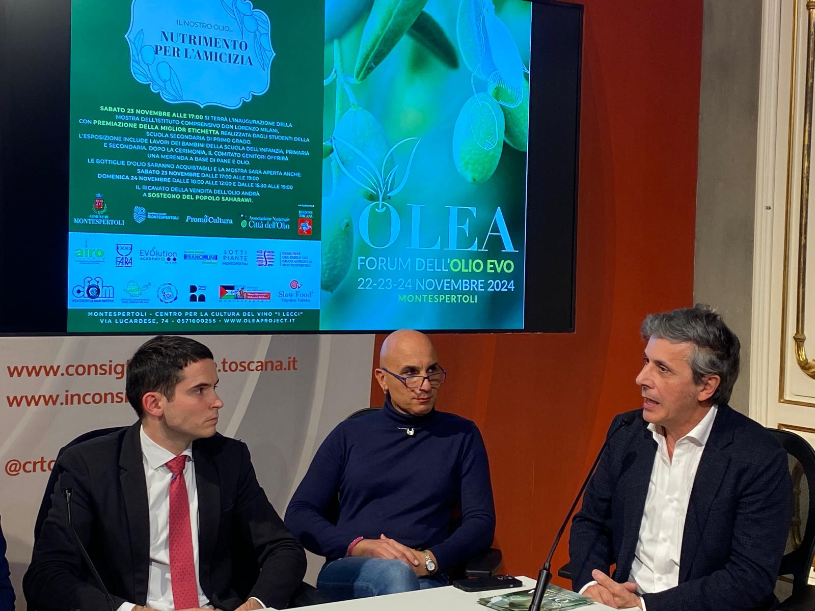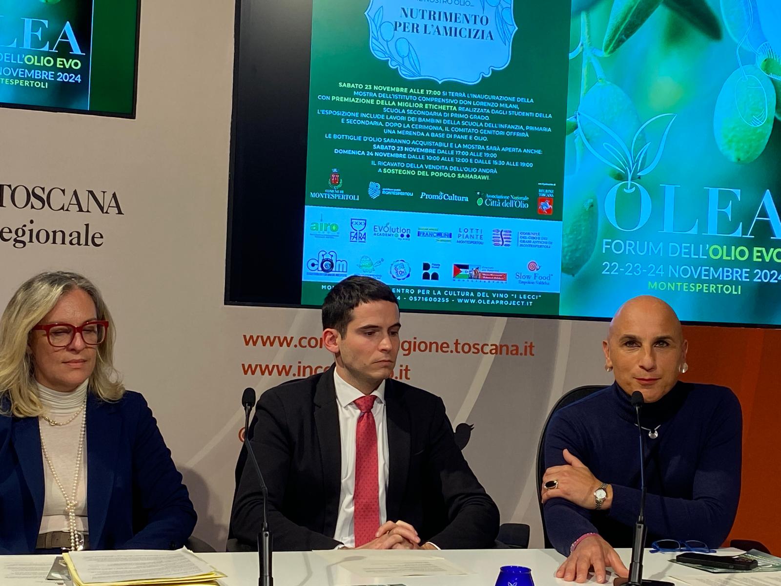 Firenze – Torna a Montespertoli Olea – Forum dell’olio EVO, la tre giorni dedicata all’olio extra vergine di oliva, giunta quest’anno alla sesta edizione. Da venerdì 22 a domenica 24 novembre il Centro per la cultura del vino “I Lecci” diventerà palcoscenico di incontri, degustazioni guidate, mostre e iniziative didattiche e di solidarietà che coinvolgeranno produttori, esperti del settore e appassionati di olio EVO. L’iniziativa, organizzata dal Comune di Montespertoli con il patrocinio della Regione Toscana e in collaborazione con la cooperativa Promocultura, Slow Food Empolese Valdelsa, Airo, Associazione nazionale Città dell’Olio e Dipartimento di Scienze e Tecnologie Agrarie, Alimentari, Ambientali e Forestali (DAGRI) dell’Università degli Studi Firenze, è stata presentata oggi (giovedì 21 novembre) nel Media Center Sassoli di palazzo del Pegaso, sede del Consiglio regionale. Sono intervenuti la consigliera segretario dell’Ufficio di presidenza Federica Fratoni e il consigliere regionale Enrico Sostegni, il vicesindaco di Montespertoli Marco Pierini, la consigliera comunale Alessia Gallerini, l’ideatrice del progetto Valentina Canuti e l’esponente di MontEspertOlio Silvio Menghini.