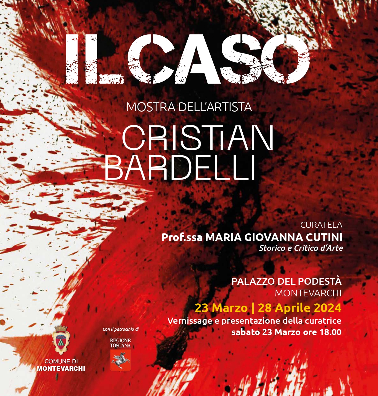 Il sindaco di Montevarchi, Silvia Chiassai Martini, ha ringraziato il vicepresidente Casucci. “Si tratta di una esposizione a cui teniamo particolarmente – ha detto – espressione di un montevarchino emergente che riesce, attraverso l’astrattismo, a mostrare in maniera istintiva e forte la sua anima. Siamo felici di poter ospitare le sue opere al palazzo del Podestà, dove abbiamo sempre realizzato mostre di varia tipologia, cercando di valorizzare le eccellenze del nostro territorio. Cristian Bardelli è sicuramente una di queste”.