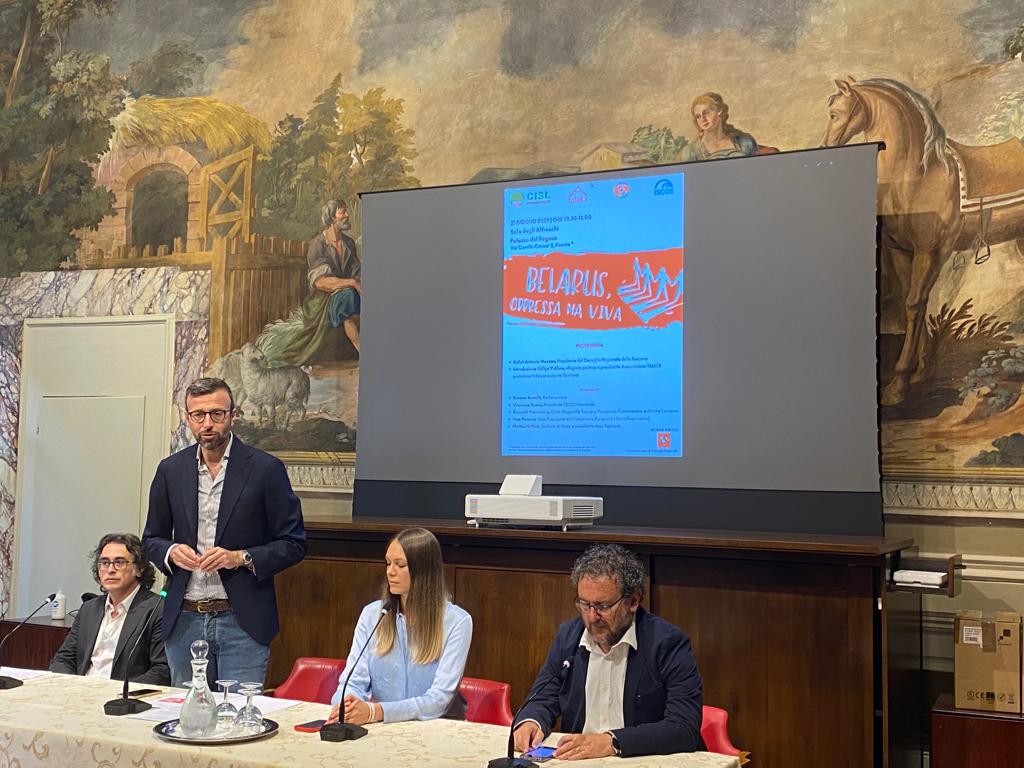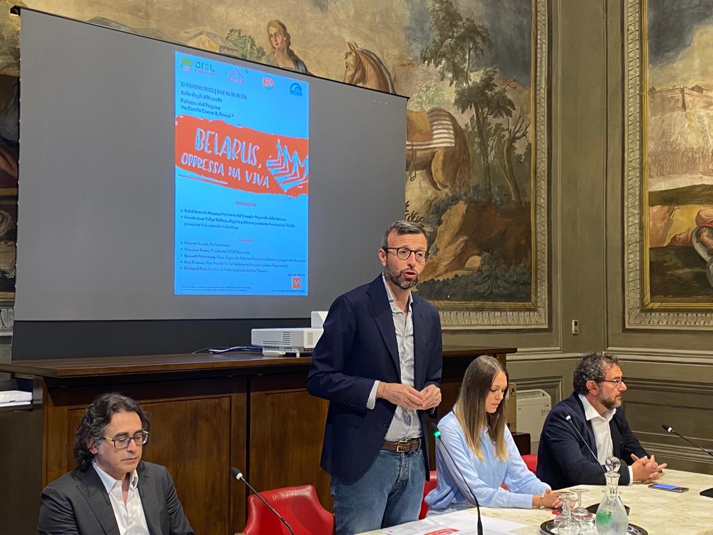 Firenze – “La Bielorussia è parte dell’Europa. Quello che sta accadendo, soprattutto dopo le elezioni del 2020, è drammatico e non possiamo voltarci dall’altra parte. Noi vogliamo costruire un Europa più forte, che sappia allargarsi e dare a tutti più diritti, più opportunità”. Così il presidente del Consiglio regionale Antonio Mazzeo aprendo il convegno ‘Belarus, oppressa ma viva’, che si è tenuto questa mattina (mercoledì 21 giugno) a palazzo del Pegaso, dove sono intervenuti Yuliya Yukhno, rifugiata politica, Francesco Gazzetti, presidente commissione Europa del Consiglio regionale, la parlamentare Simona Bonafè, il presidente nazionale Istituto sindacale per la cooperazione allo sviluppo (Iscos) Vincenzo Russo e il sindaco di Prato e presidente Anci Toscana Matteo Biffoni.