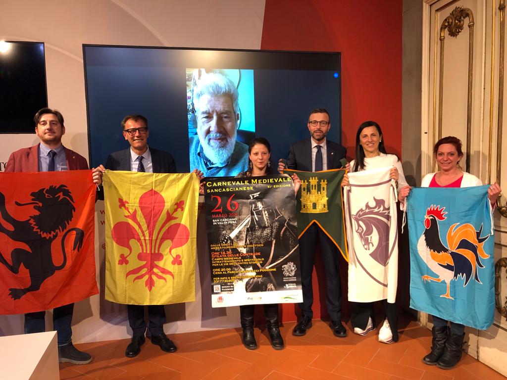 Firenze – Il Carnevale medievale di San Casciano in Val di Pesa (Fi) torna a sfilare e a dare spettacolo per le vie del centro storico. Dopo la pausa causata dalla pandemia la manifestazione, organizzata dall’associazione delle Contrade sancascianesi, riprende il via domenica 26 marzo. Alla conferenza stampa di presentazione è intervenuto il presidente del Consiglio regionale della Toscana Antonio Mazzeo, il consigliere regionale Massimiliano Pescini, il sindaco di San Casciano in Val di Pesa Roberto Ciappi, la presidente dell’associazione delle Contrade sancascianesi Ilena Cappelli e in collegamento da remoto l’attore Alessandro Benvenuti.