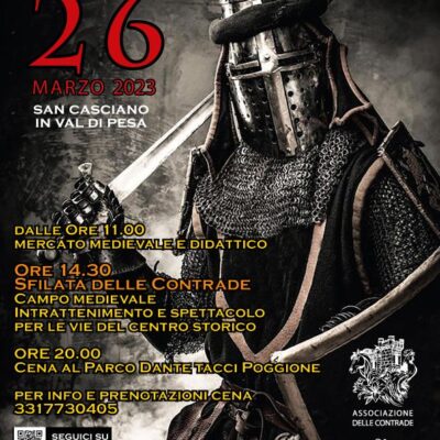 L’undicesima edizione di una manifestazione che, dopo una lunga pausa dettata dalla pandemia, torna a divertire, a vestire a festa il paese, ad intrattenere, ad esprimersi per le vie del centro storico in tutta la sua carica vitale. Per le cinque contrade Cavallo, Gallo, Giglio, Leone e Torre la gioia di sfilare e interpretare il Medioevo in chiave artistica avrà il sapore di una sfida senza precedenti. Temi, personaggi fiabeschi, fatti storici e leggendari, in bilico tra scienza, agricoltura, sacralità e cultura millenaria sono l’anima della manifestazione in costume che prenderà vita a San Casciano in Val di Pesa domenica 26 marzo a partire dalle ore 14.30 con un’edizione evocativa e fortemente simbolica dal titolo “Ad novam vitam”. L’iniziativa è organizzata dall’associazione Contrade Sancascianesi, presieduta da Ilena Cappelli, in collaborazione con il Comune, la Pro Loco, il Centro commerciale naturale La dolce Gita e il contributo di ChiantiBanca.