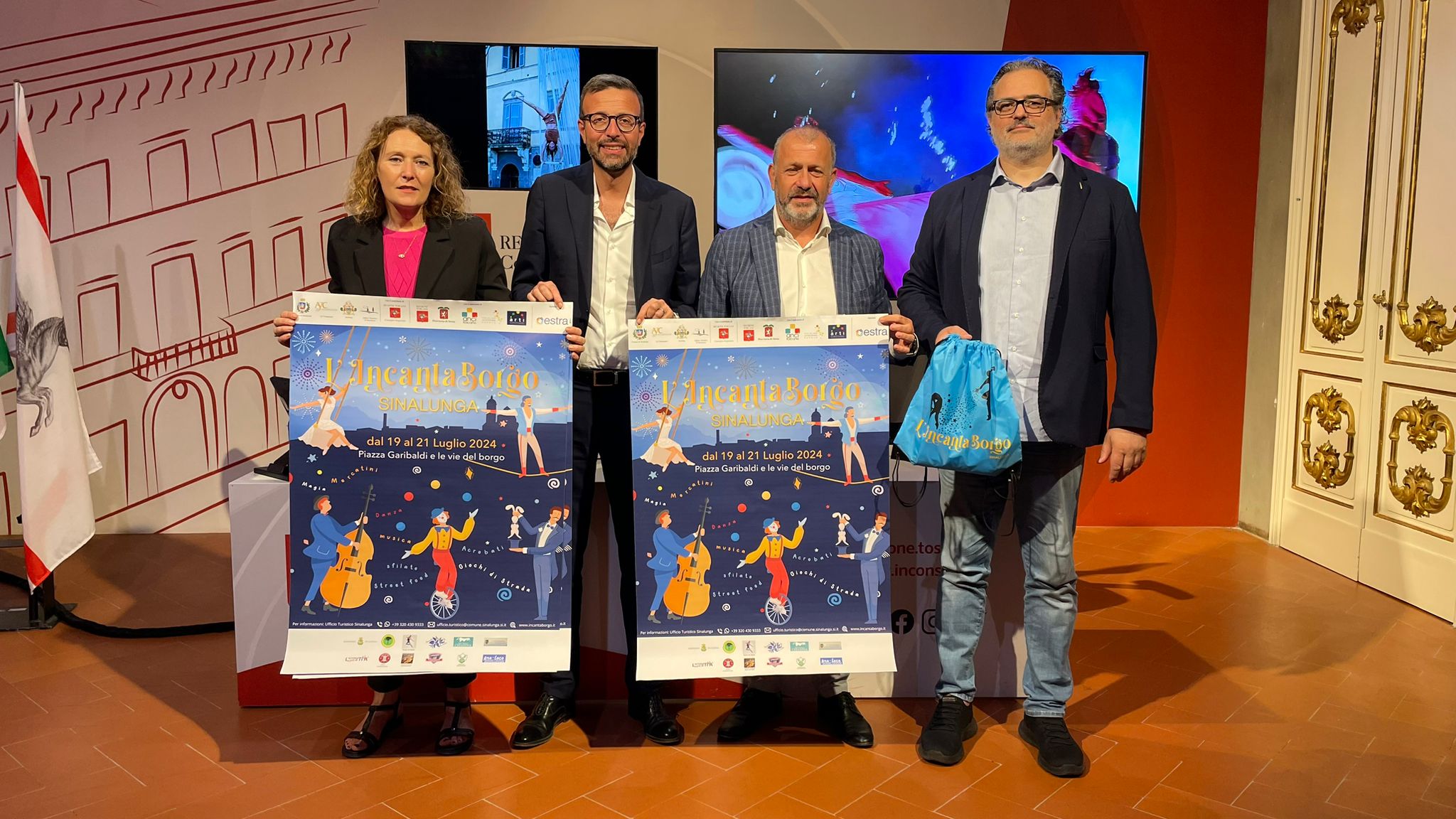 Firenze – Torna ‘Incantaborgo’, dal 19 al 21 luglio, rassegna di spettacoli itineranti musicali, teatrali e artistici che si sviluppa nello scenario offerto dal borgo medievale di Sinalunga. La conferenza stampa di presentazione si è svolta al Media Center Sassoli di palazzo del Pegaso, con gli interventi del presidente dell’Assemblea toscana, Antonio Mazzeo; della consigliera regionale Elena Rosignoli; del sindaco di Sinalunga Edo Zacchei; dell’assessore alla cultura e alla promozione del territorio Gianni Bagnoli.