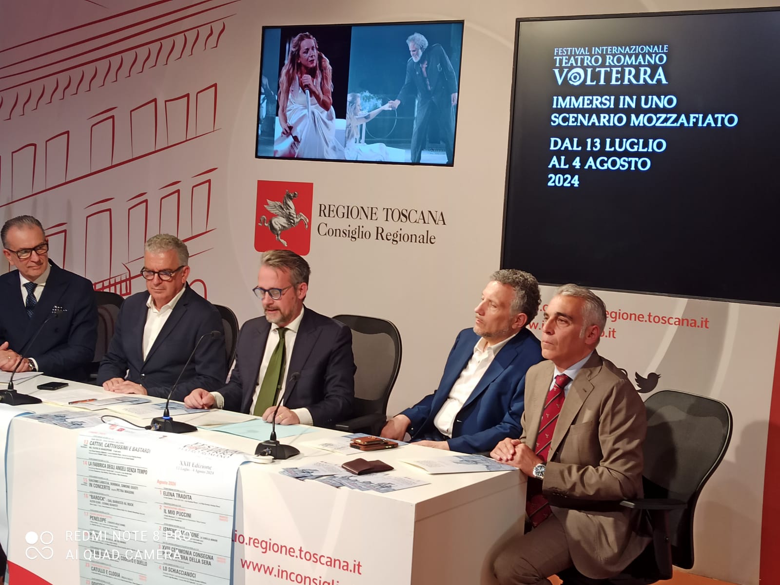 “Sono felice di poter presentare a livello regionale questo Festival – ha detto il vicepresidente del Consiglio regionale Marco Casucci – che riesce a coniugare la storia al futuro; è importante valorizzare i musei e i teatri storici riportandoli in vita, come fa perfettamente questa rassegna che da 22 anni riesce a rendere vitale un luogo magico e suggestivo come il Teatro Romano di Volterra. La Toscana è piena di luoghi meravigliosi e il teatro di Volterra diventa un esempio di come possiamo coniugare sapientemente cultura e rispetto del territorio e della storia”.