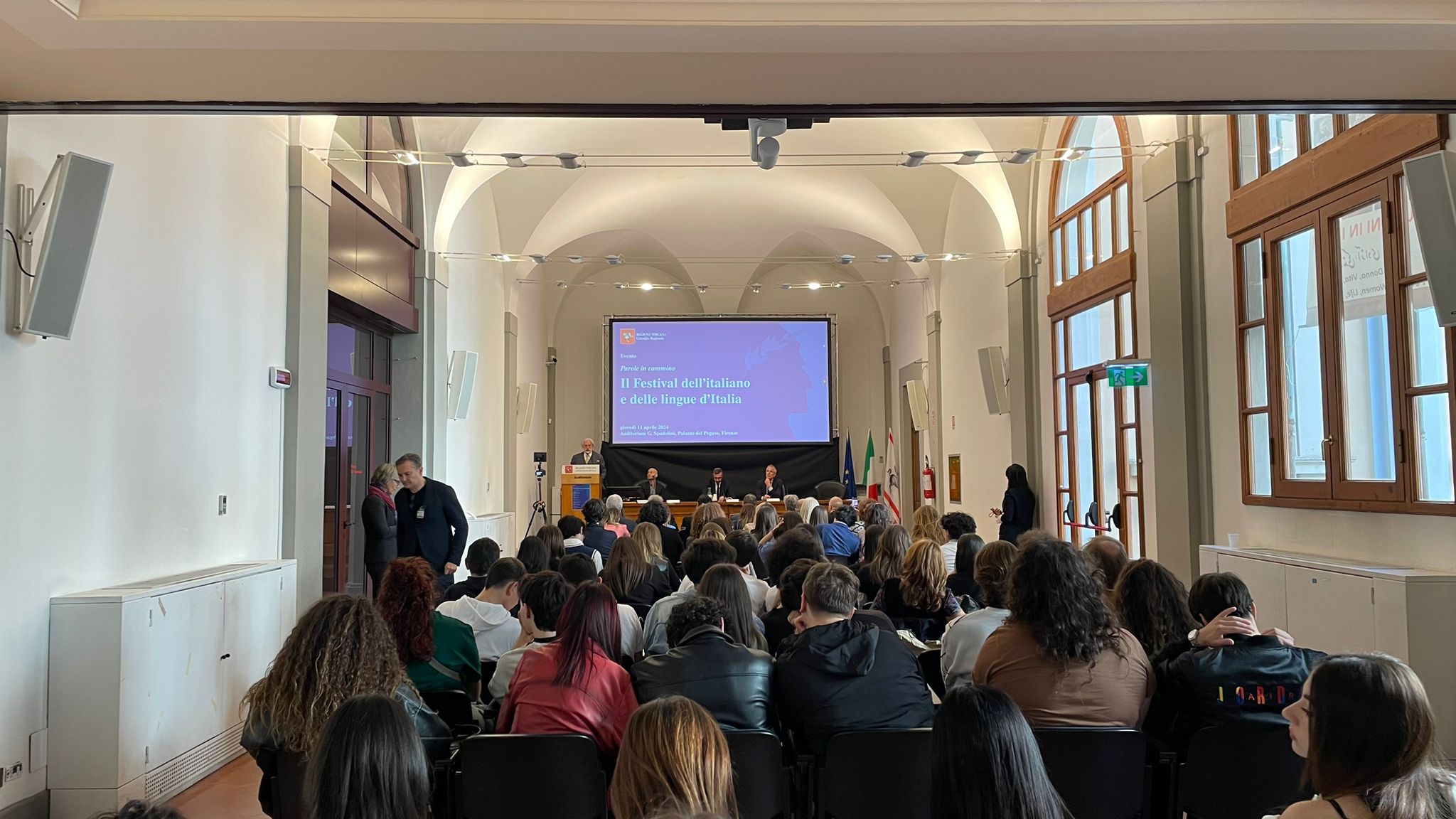 Firenze – All’Auditorium Spadolini di palazzo del Pegaso, sede del Consiglio regionale della Toscana, si è svolta l’edizione fiorentina del festival itinerante dell’italiano e delle lingue d’Italia “Parole in cammino”. La giornata si è aperta con i saluti istituzionali del presidente del Consiglio regionale Antonio Mazzeo e del vicepresidente Stefano Scaramelli, di Roberto Curtolo dell’Ufficio Scolastico Regionale del Ministero dell’Istruzione, di Federico Cignelli in rappresentanza del Parlamento regionale degli studenti. Erano presenti all’incontro gli studenti del Liceo Leonardo da Vinci di Civitanova Marche e del Liceo Scientifico De Sanctis di Salerno.