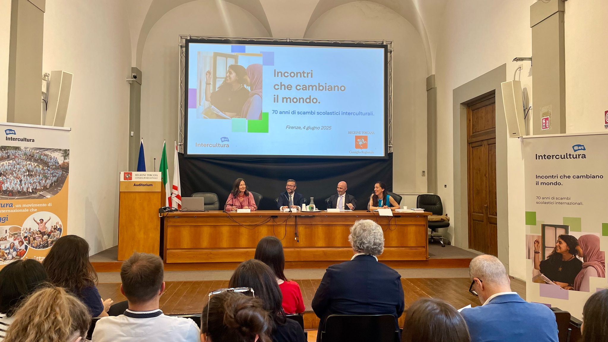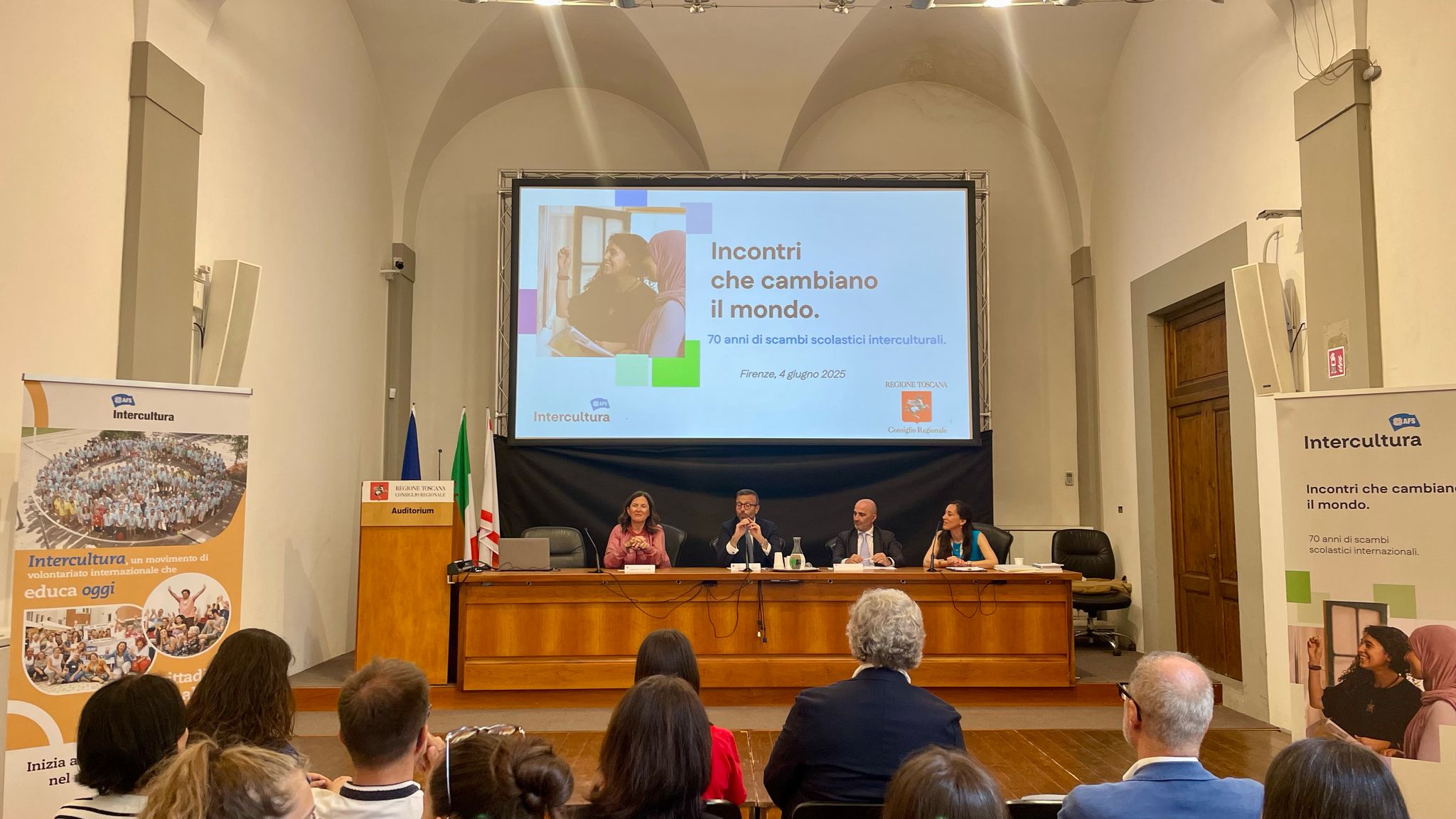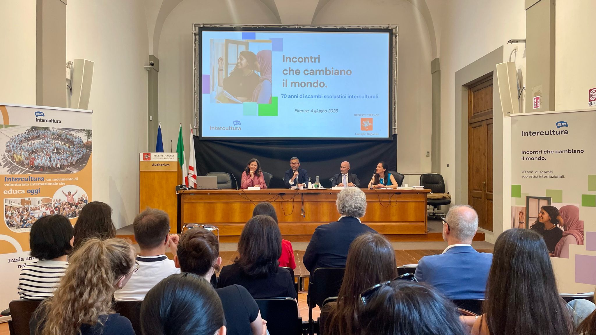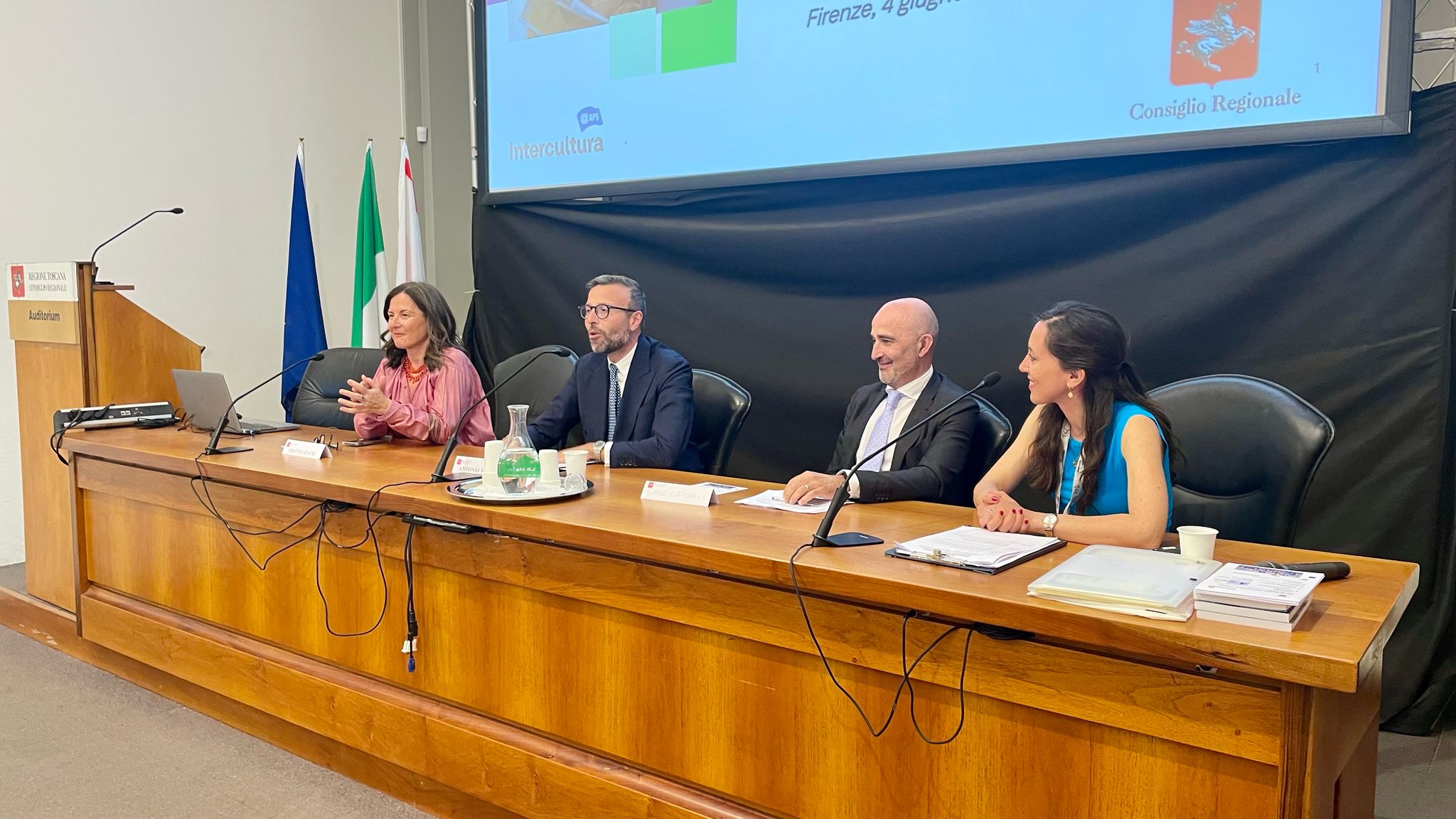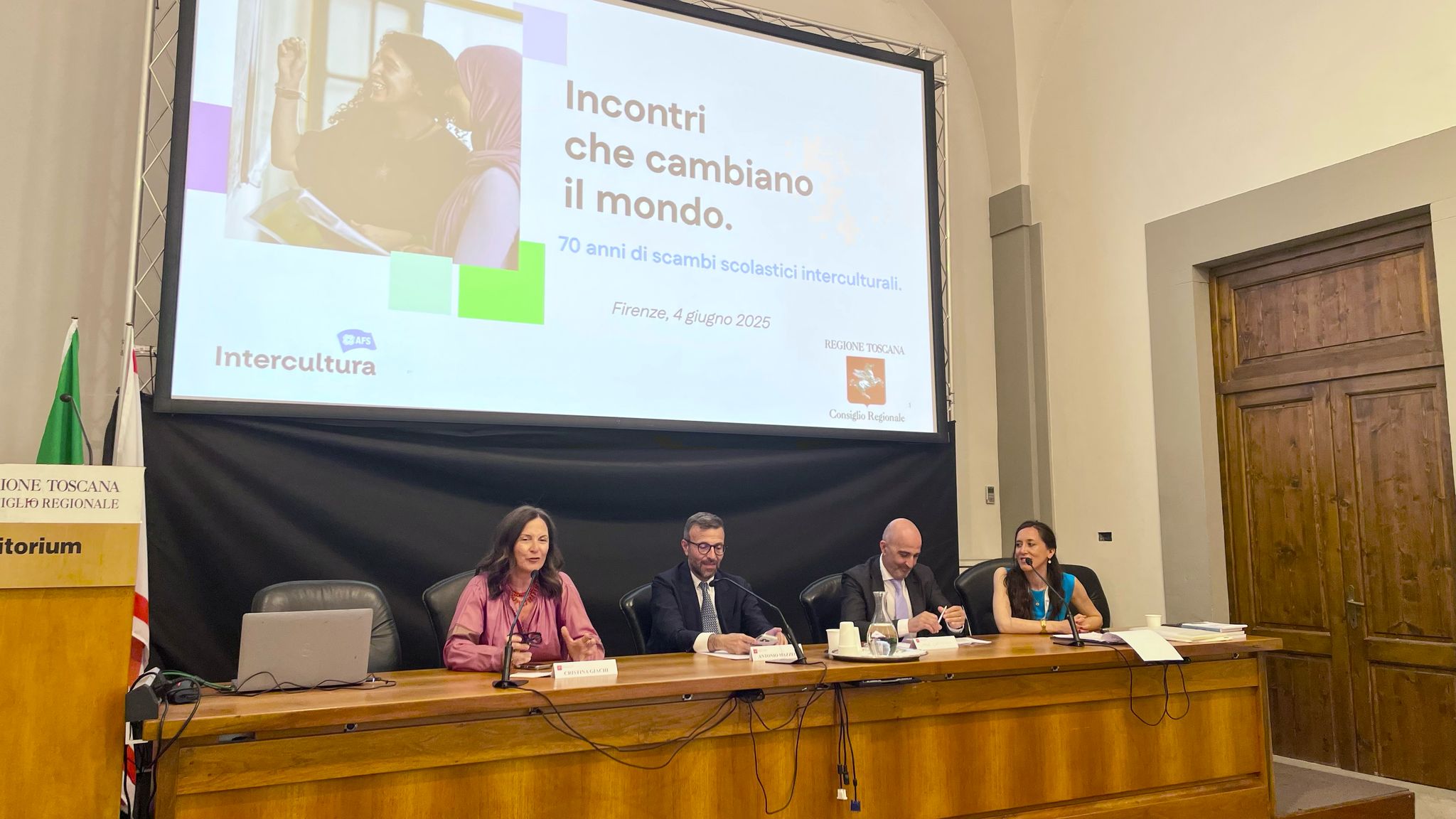 La cerimonia si è tenuta questo pomeriggio, mercoledì 4 giugno, nell’Auditorium ‘Spadolini’ a palazzo del Pegaso. Sono intervenuti il presidente del Consiglio regionale, Antonio Mazzeo, la presidente della commissione Cultura, Cristina Giachi e Simone Caporali, direttore esecutivo dell’associazione Intercultura Odv.