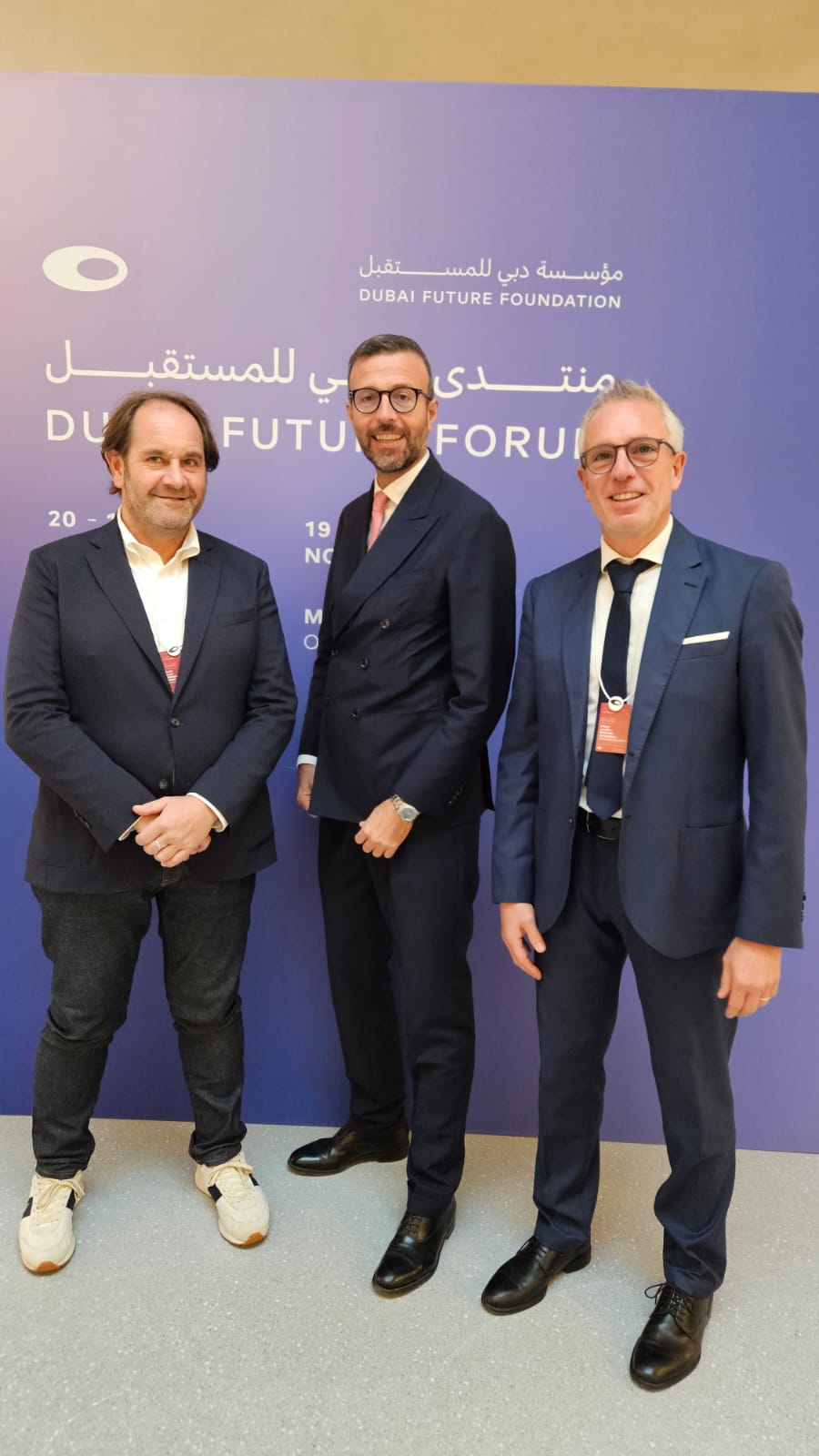 Il presidente del Consiglio regionale Antonio Mazzeo, il vicepresidente Stefano Scaramelli e il consigliere regionale Gabriele Veneri a Dubai per presentare il progetto Toscana 2050