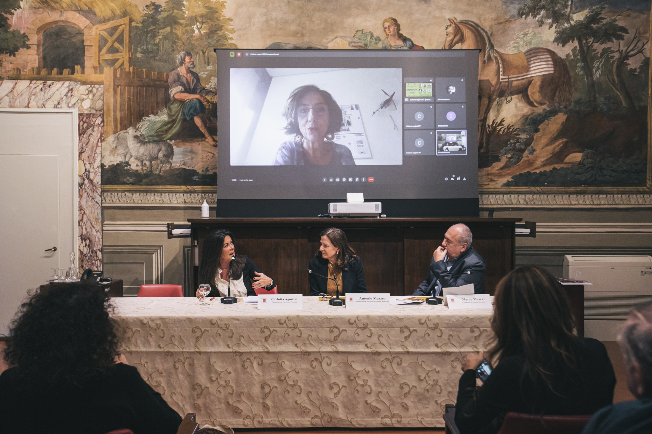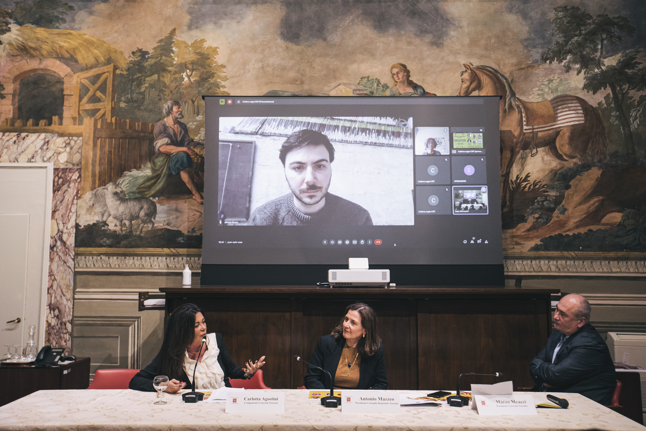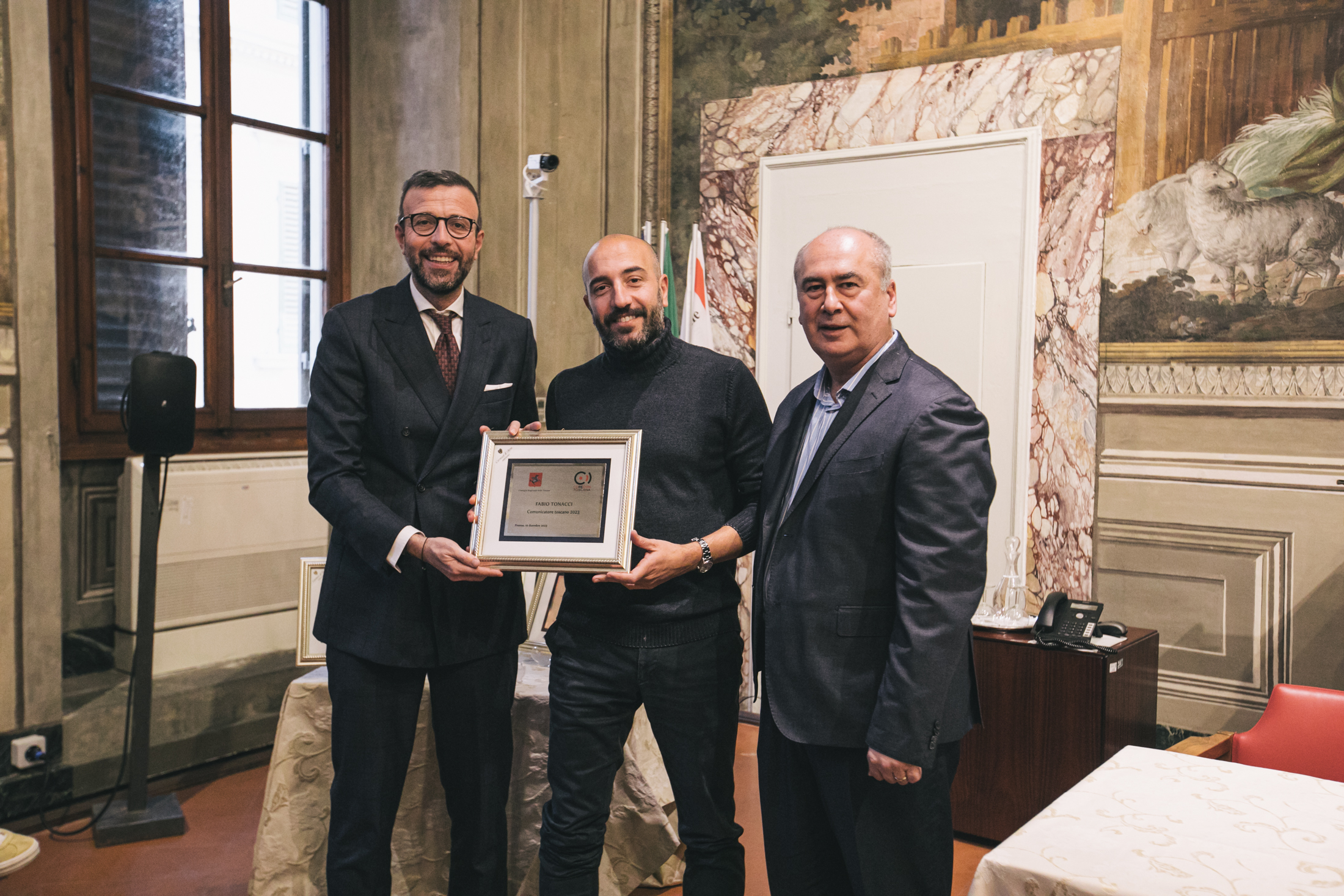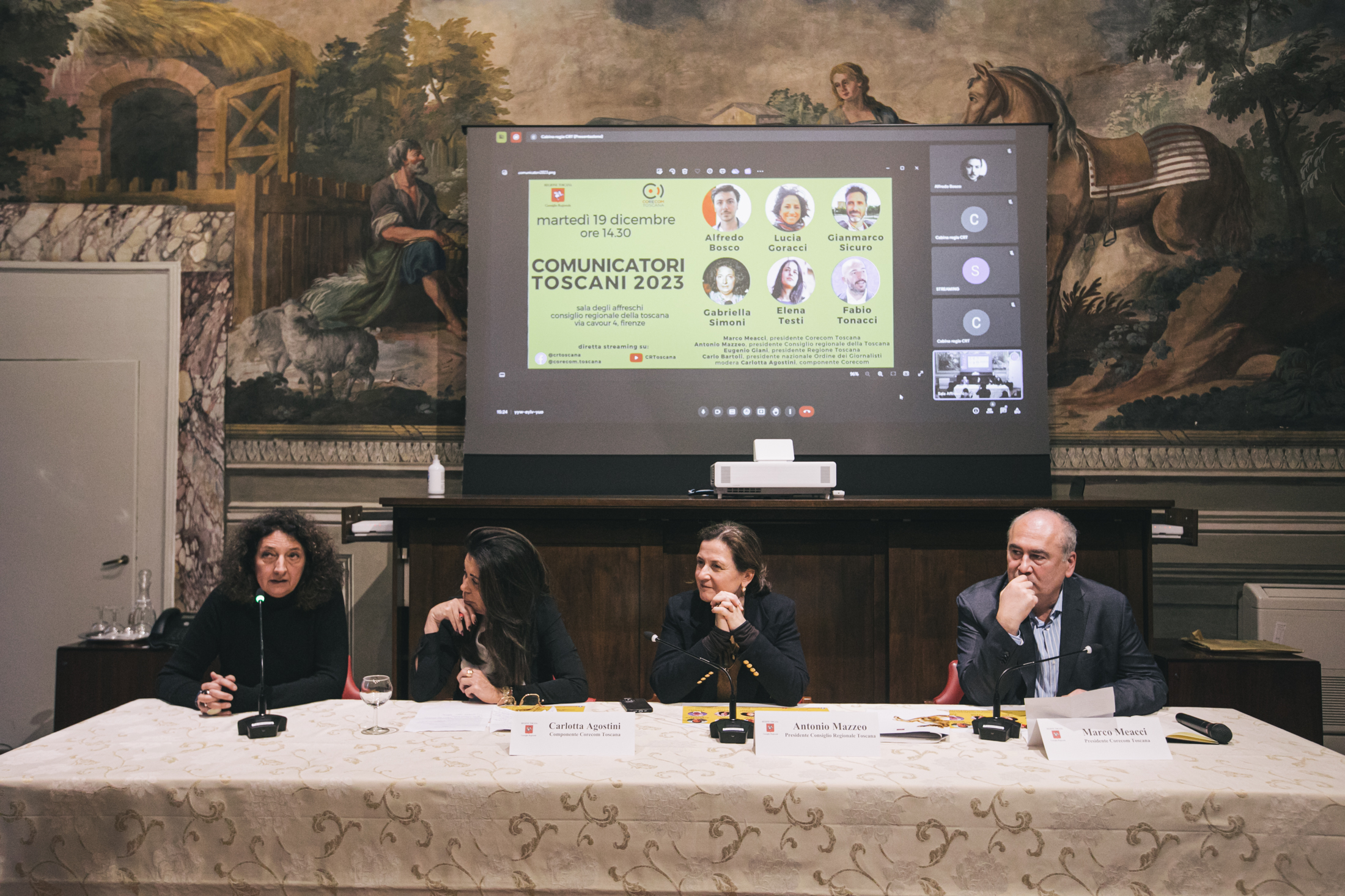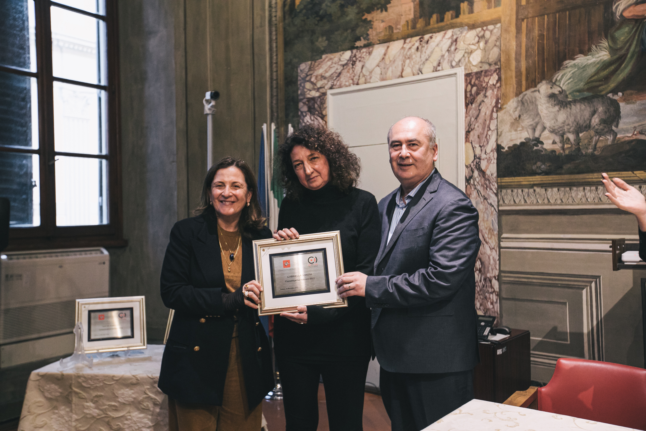 Alla cerimonia sono intervenuti Antonio Mazzeo, presidente del Consiglio regionale, Cristina Giachi, presidente della Commissione Cultura, Marco Meacci, presidente del Corecom