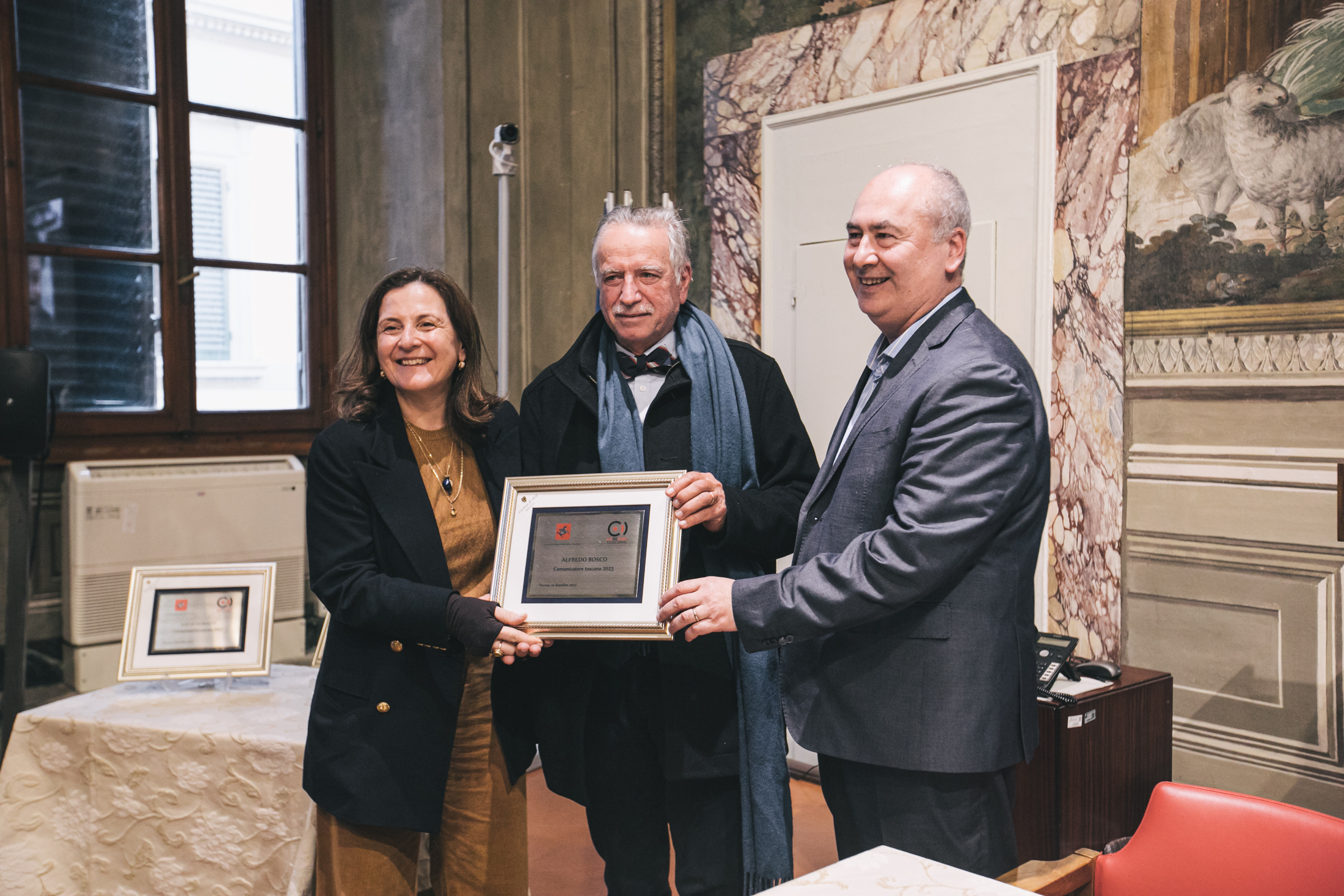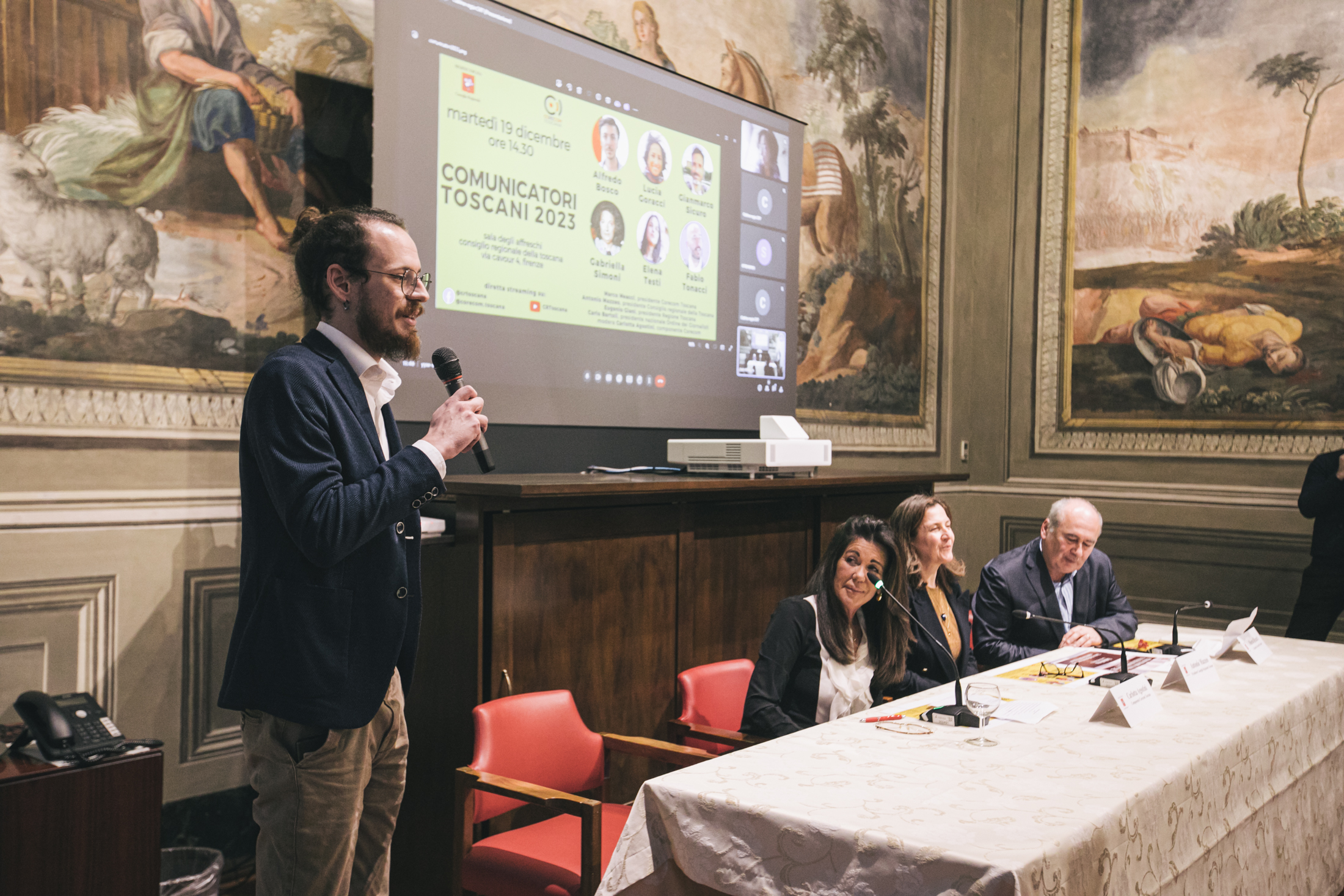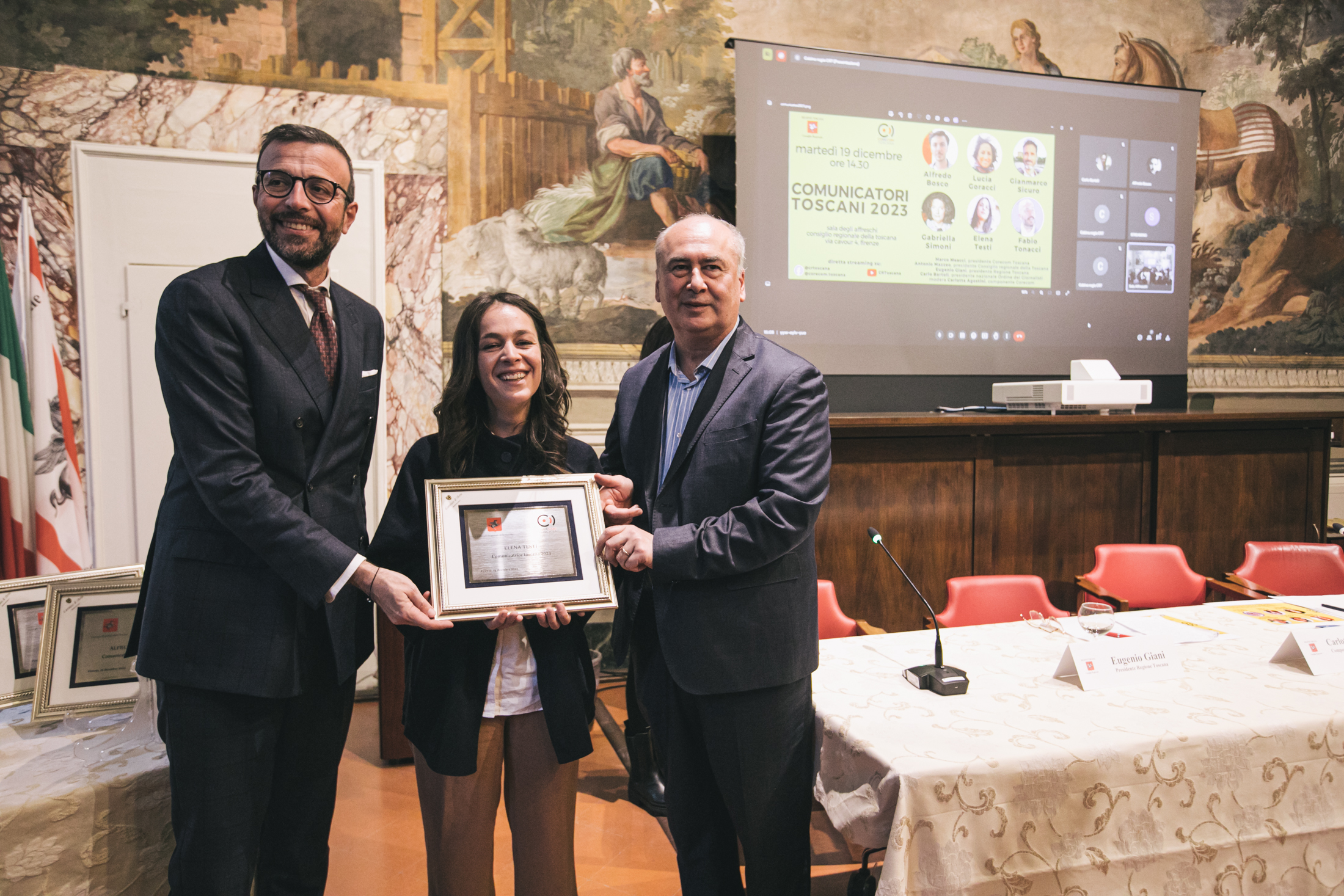 La cerimonia di conferimento del riconoscimento si è svolta presso la Sala degli Affreschi di palazzo del Pegaso, alla presenza di Marco Meacci, presidente del Corecom Toscana, ente promotore del premio, Antonio Mazzeo, presidente del Consiglio regionale, Cristina Giachi presidente della Commissione Cultura. In video collegamento è intervenuto Carlo Bartoli, presidente nazionale dell’Ordine dei giornalisti. Ha moderato l’incontro Carlotta Agostini, componente del Corecom.