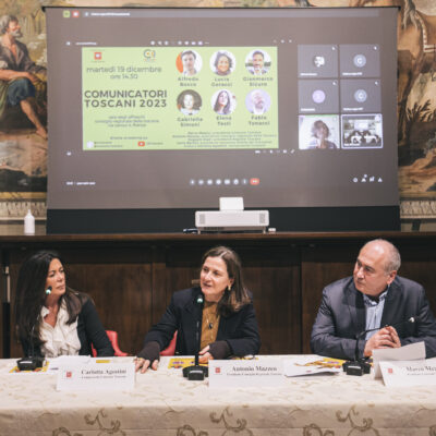 Nel corso dell’iniziativa è stato premiato anche il vincitore del bando per la migliore tesi di laurea magistrale in comunicazione, discussa in un ateneo della Toscana nel 2022. Il premio è stato assegnato a Damiano Kerma dell’Università di Firenze.