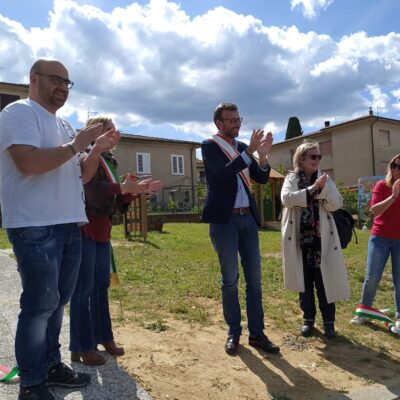“Questo è il secondo parco giochi che realizziamo nella frazione di Santo Pietro Belvedere – ha raccontato la sindaca Arianna Cecchini – il primo era nel centro storico, mentre questo è stato realizzato in una zona più nuova, densamente abitata. Sarà accessibile sia dalla parte alta che dalla parte bassa del paese, visto che stiamo realizzando un percorso pedonale che le collega. Grazie al contributo della Farmavaldera, che gestisce anche la nostra farmacia comunale, è stata possibile la piantumazione di cinque nuovi alberi nell’area giochi”.